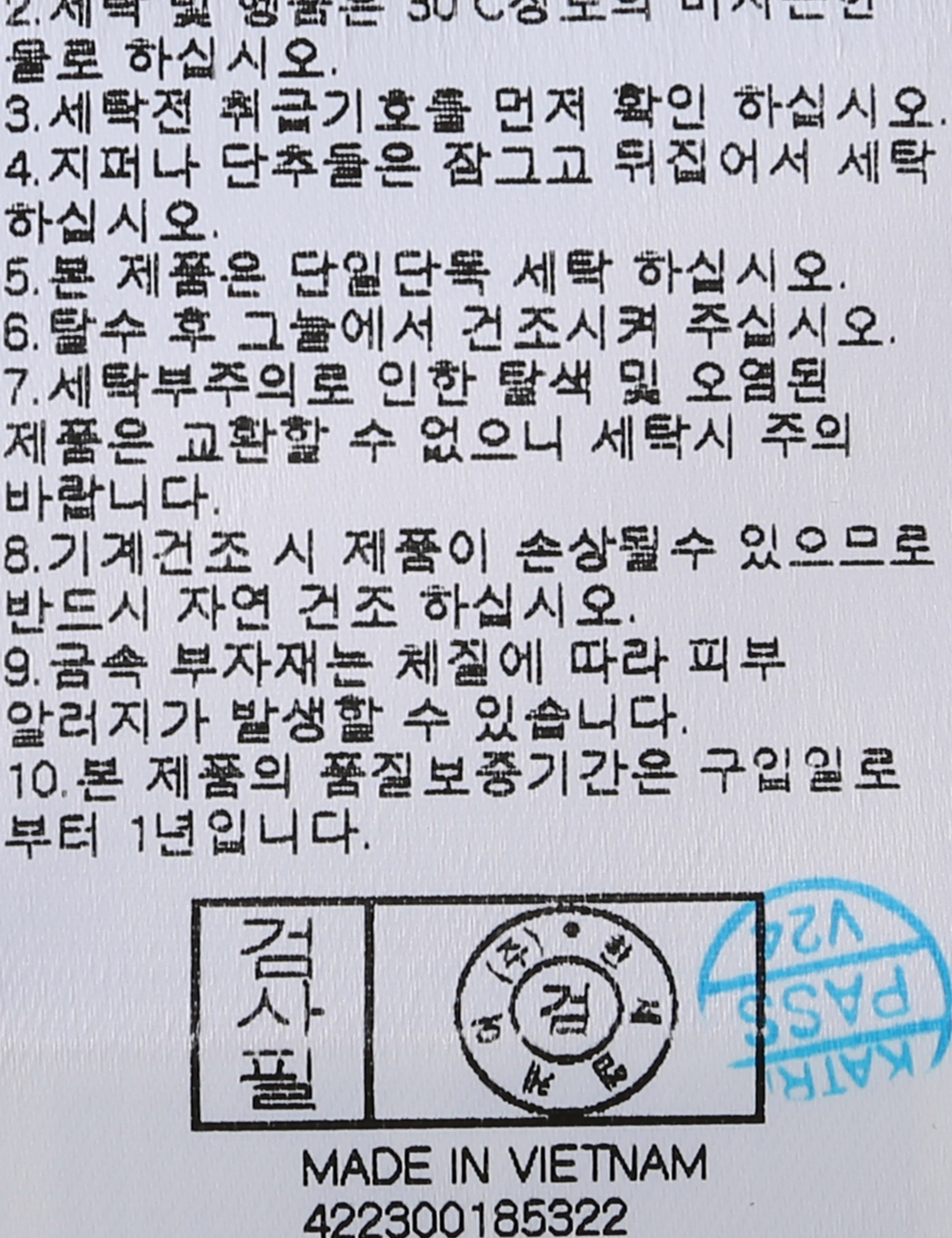 세탁방법 및 취급시 주의사항 중성세제로 단 시간내에 세탁하십시오.(케어라벨참고)