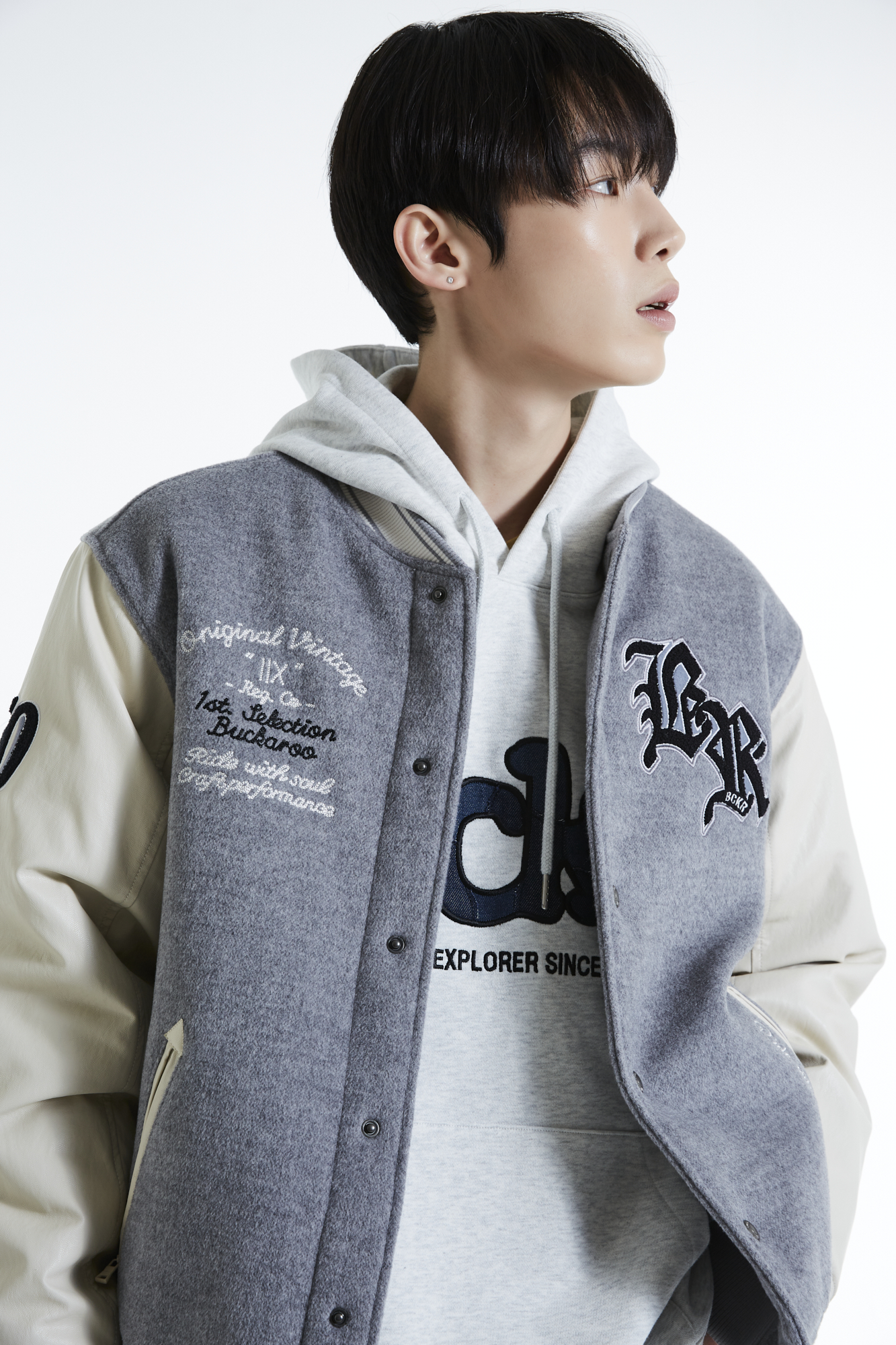 - 스탠다드 핏의 기본 바시티로 데님 등과 매치하여 데일리로 착용하기 좋은 스타일