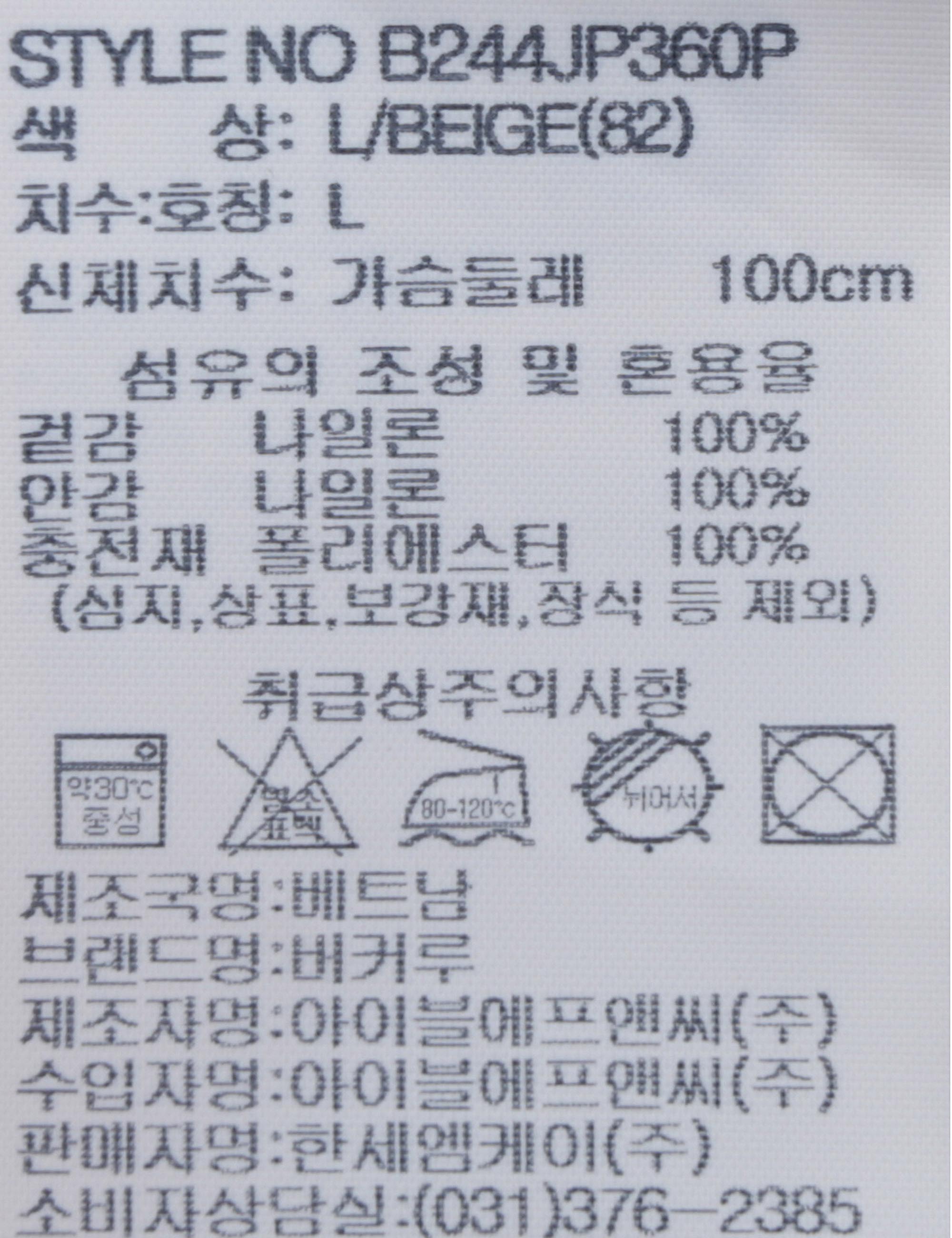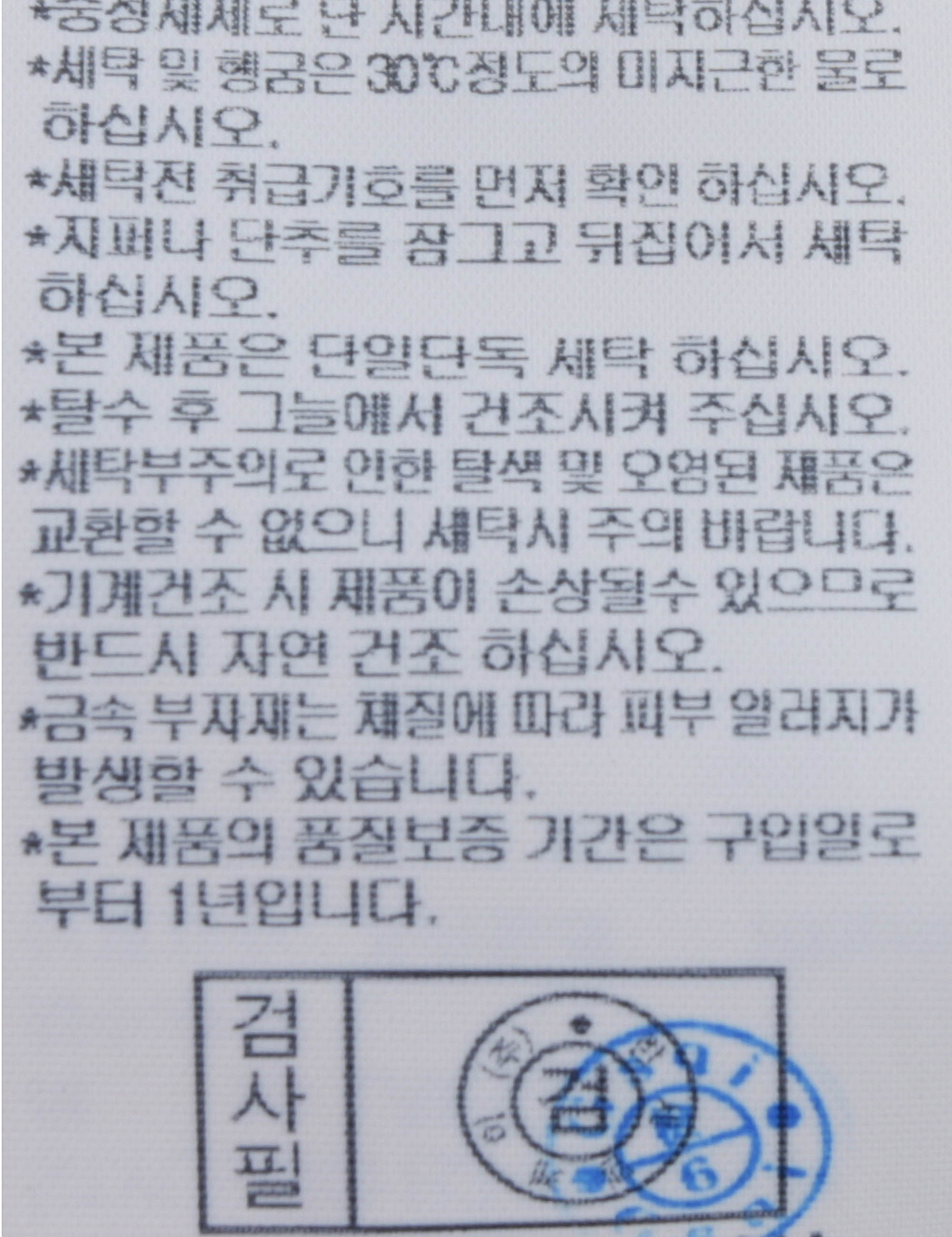 | 세탁방법 및 취급시 주의사항 | 중성세제로 단 시간내에 세탁하십시오.(케어라벨참고) |