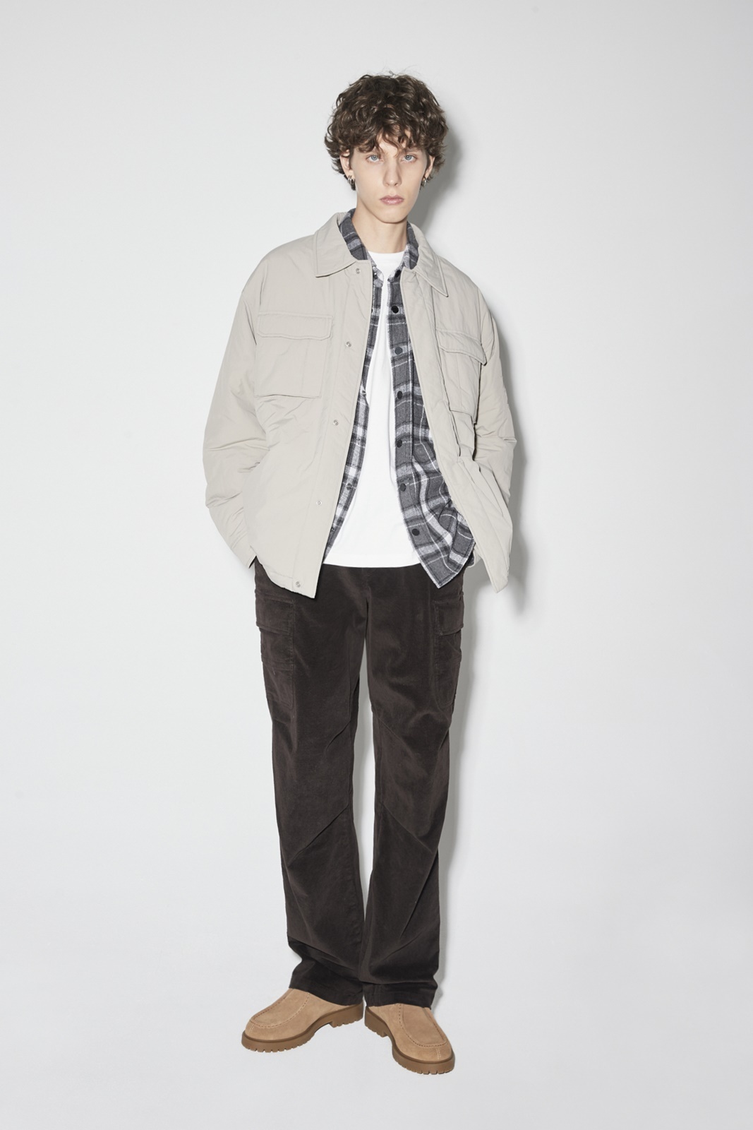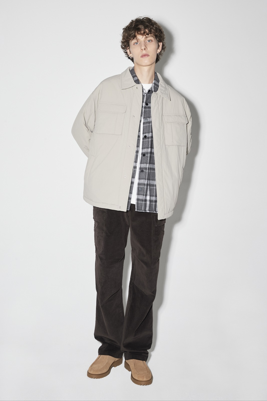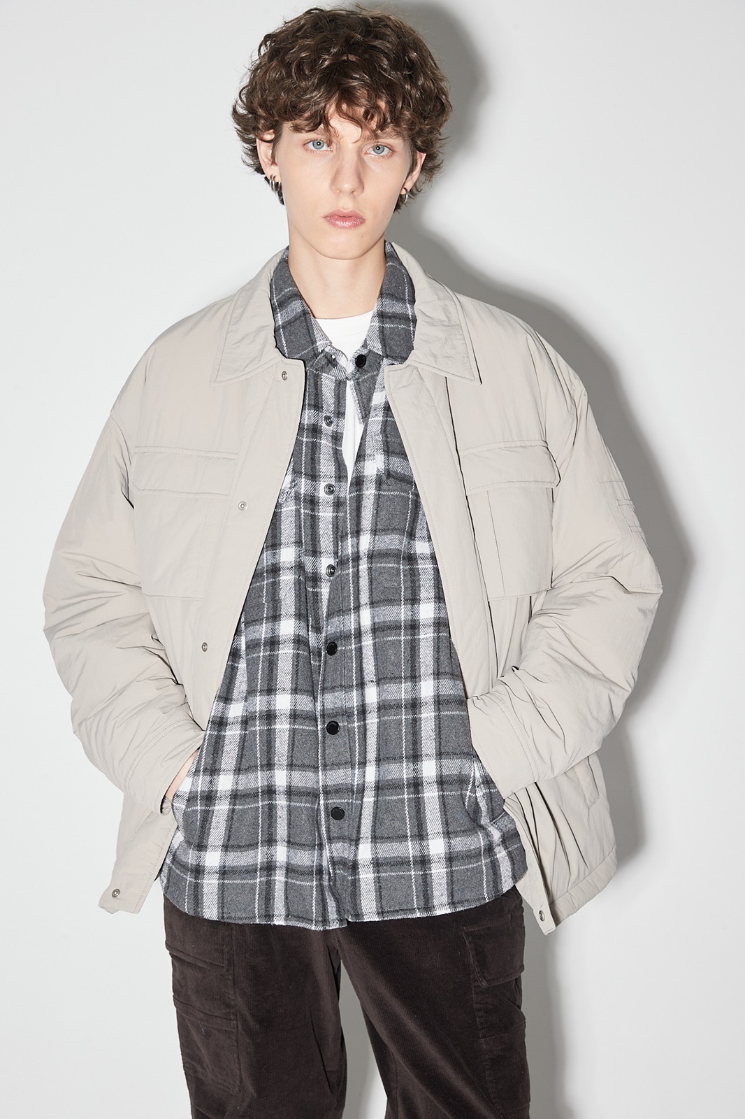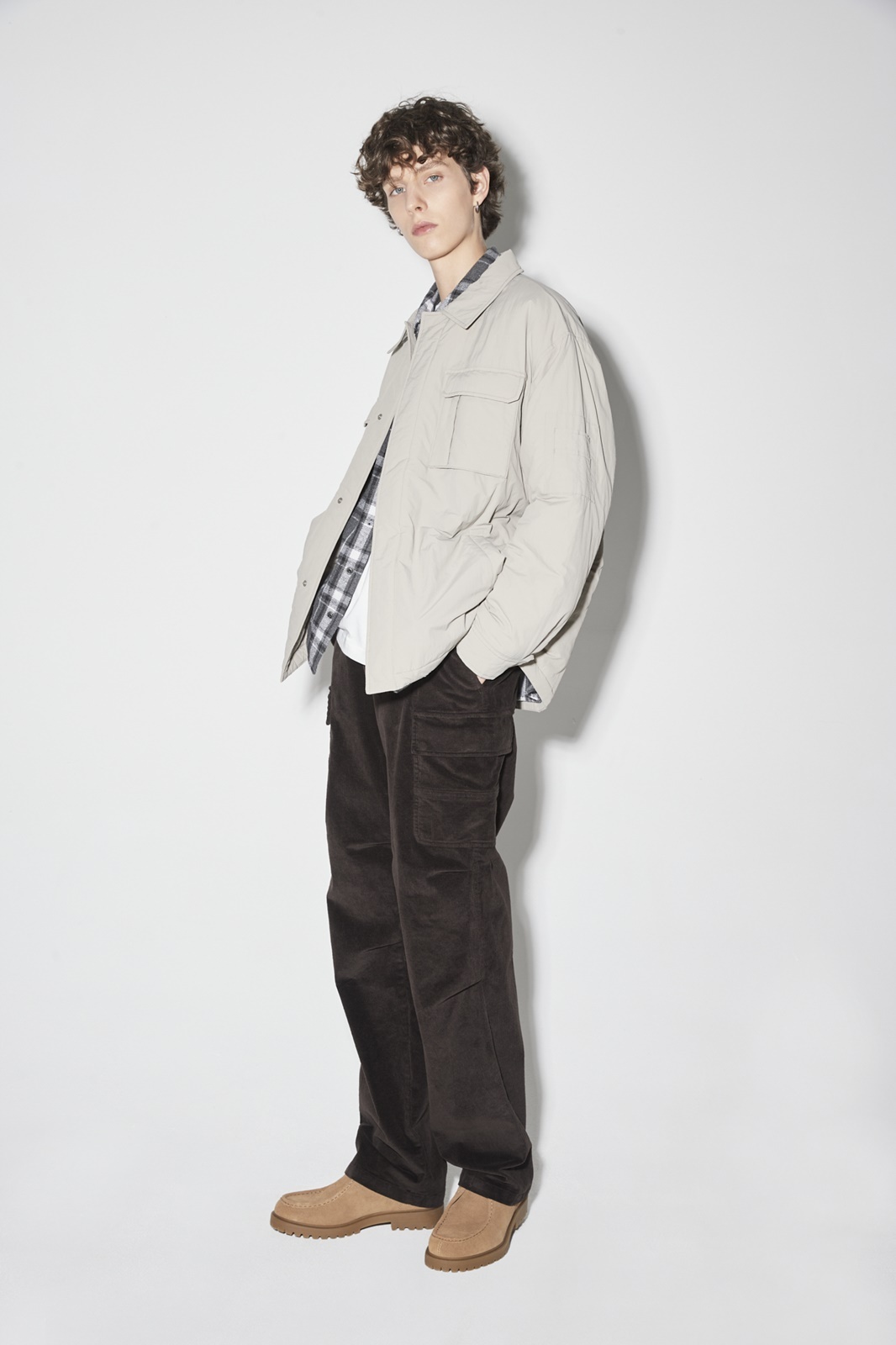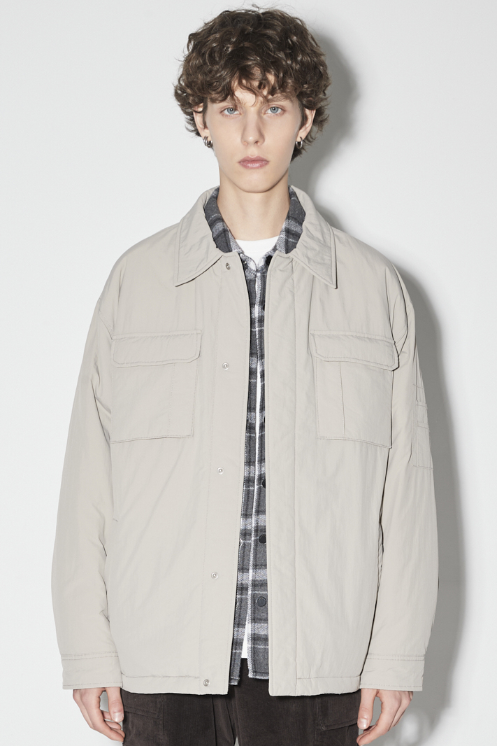 *드롭 숄더의 세미 루즈핏 실루엣 패딩 카라 점퍼로 다운필 패딩을 사용하여 가벼우면서도 볼륨감을 살린 셔켓 스타일의 점퍼