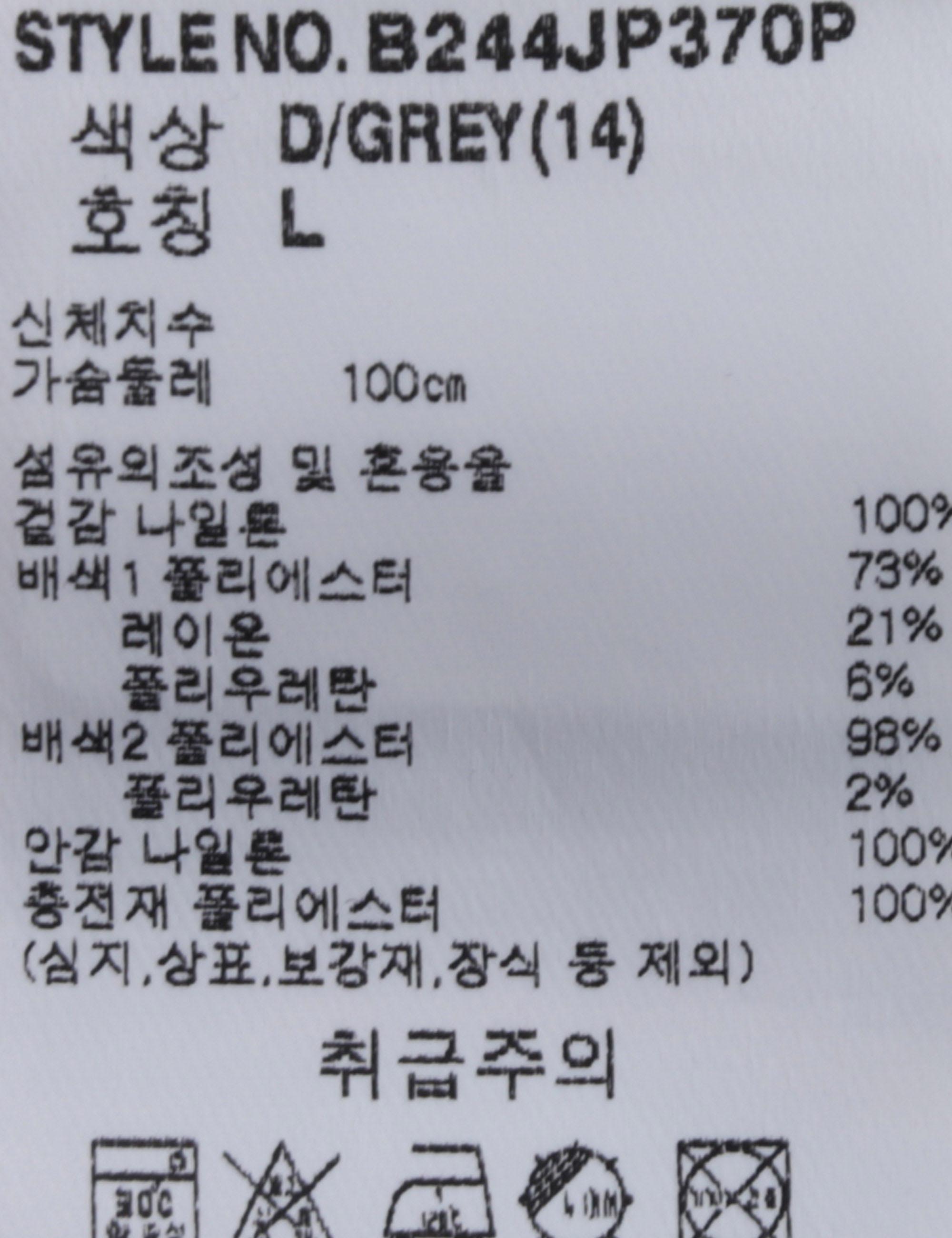 브랜드 홈 바로가기| 제품소재 | [겉감]나일론100% [배색1]폴리에스터73% 레이온21% 폴리우레탄6% [배색2]폴리에스터98% 폴리우레탄2% [안감]나일론100% [충전재]폴리에스터100% |