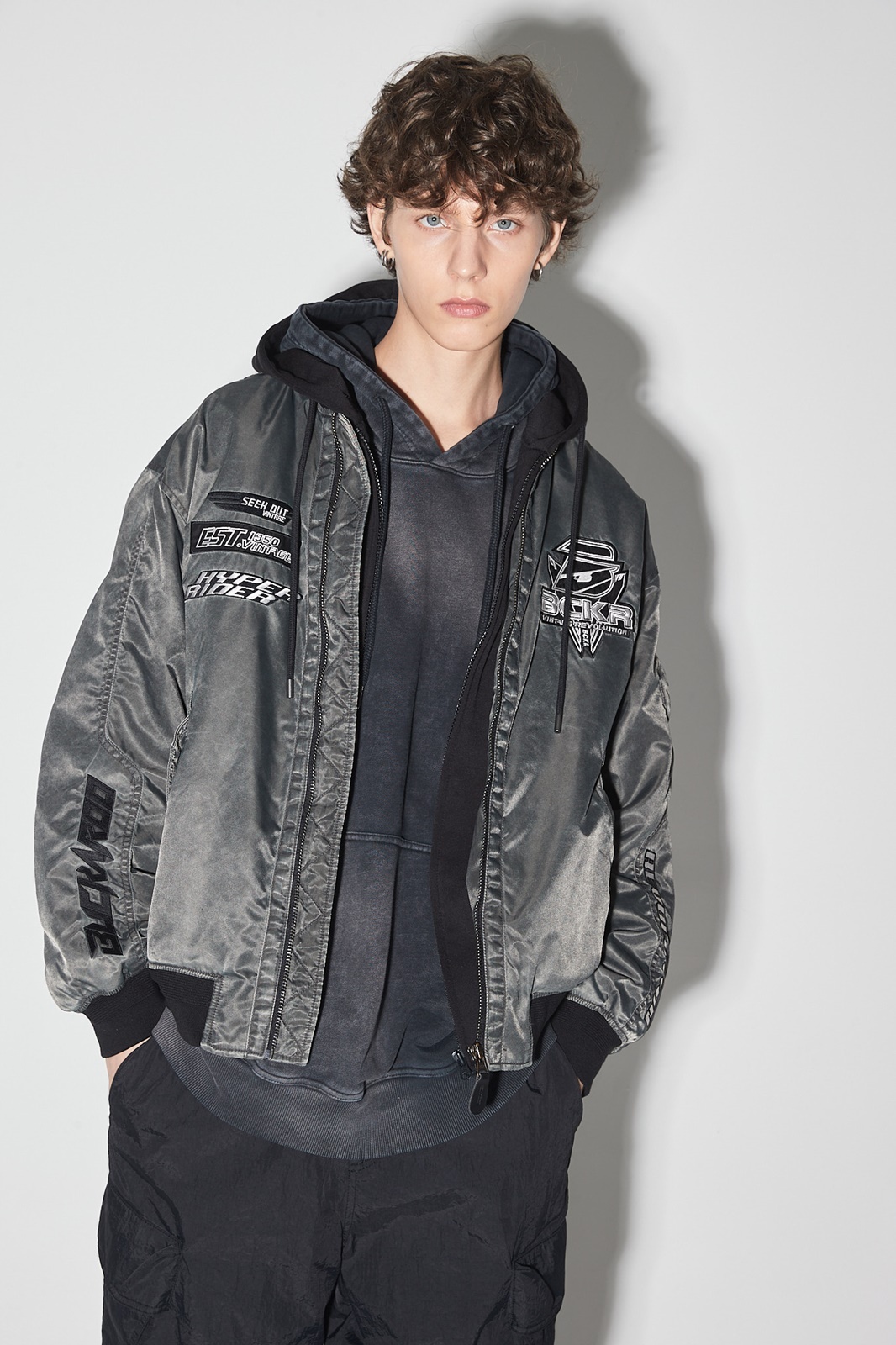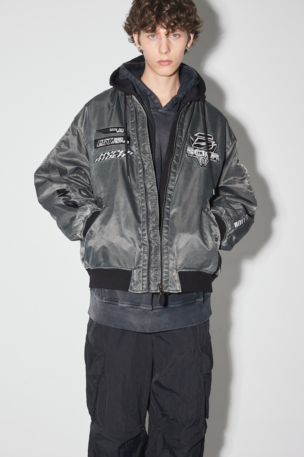 상품명 피그먼트 후드 탈부착 패딩 항공점퍼(B244JP370P)
