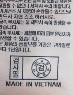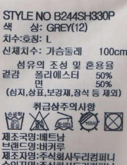 | 세탁방법 및 취급시 주의사항 | 본 제품은 손세탁 하십시오.(케어라벨참고) |