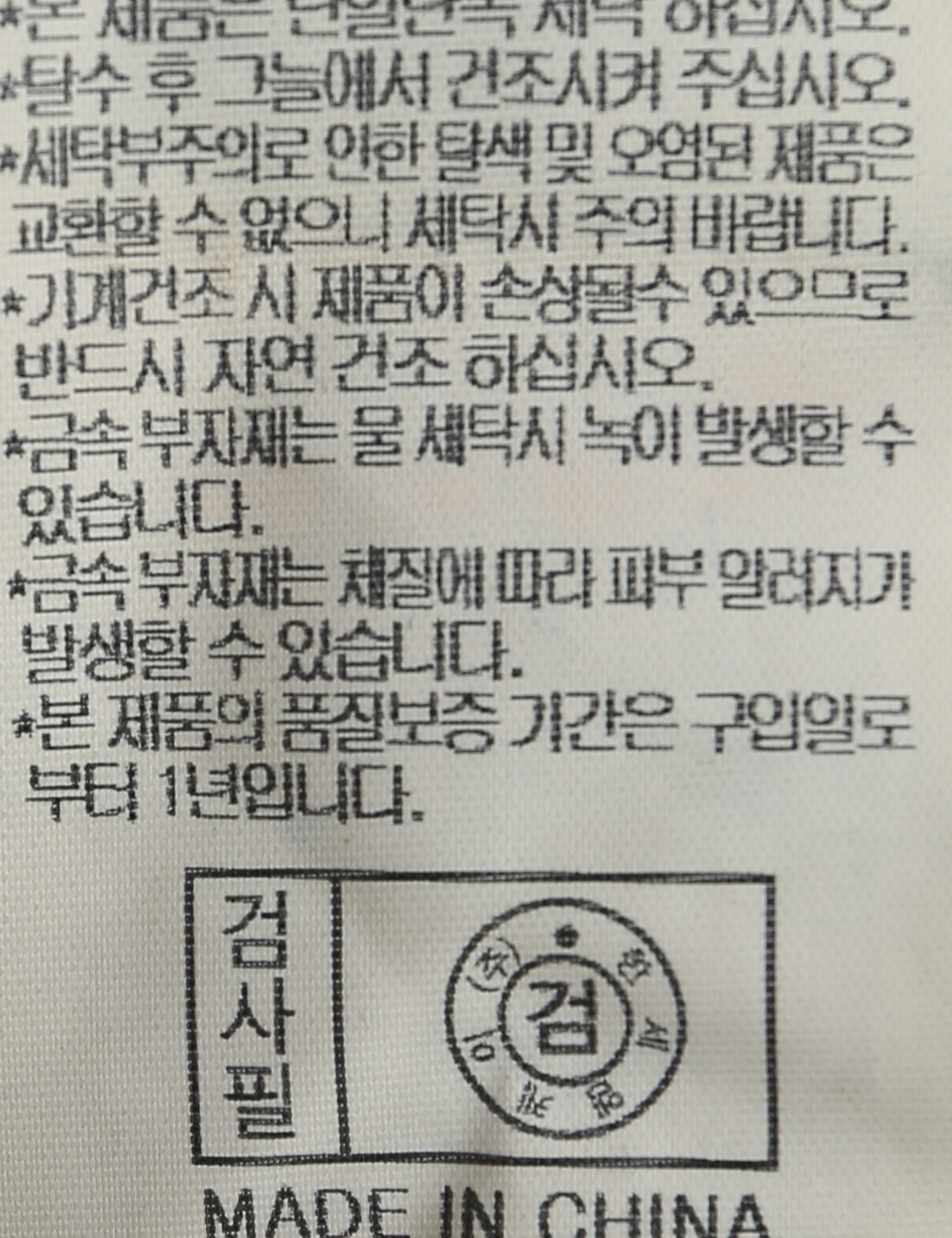 | 세탁방법 및 취급시 주의사항 | 본 제품은 손세탁 하십시오.(케어라벨참고) |