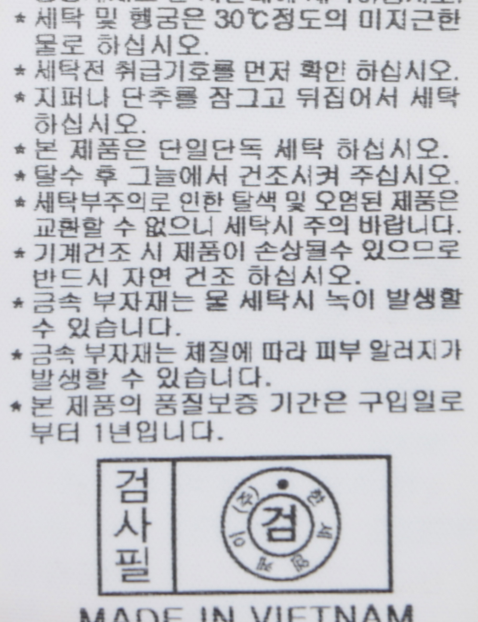 | 세탁방법 및 취급시 주의사항 | 본 제품은 손세탁 하십시오.(케어라벨참고) |