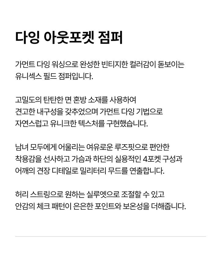 상품명 다잉 아웃포켓 점퍼(B253JP010P)