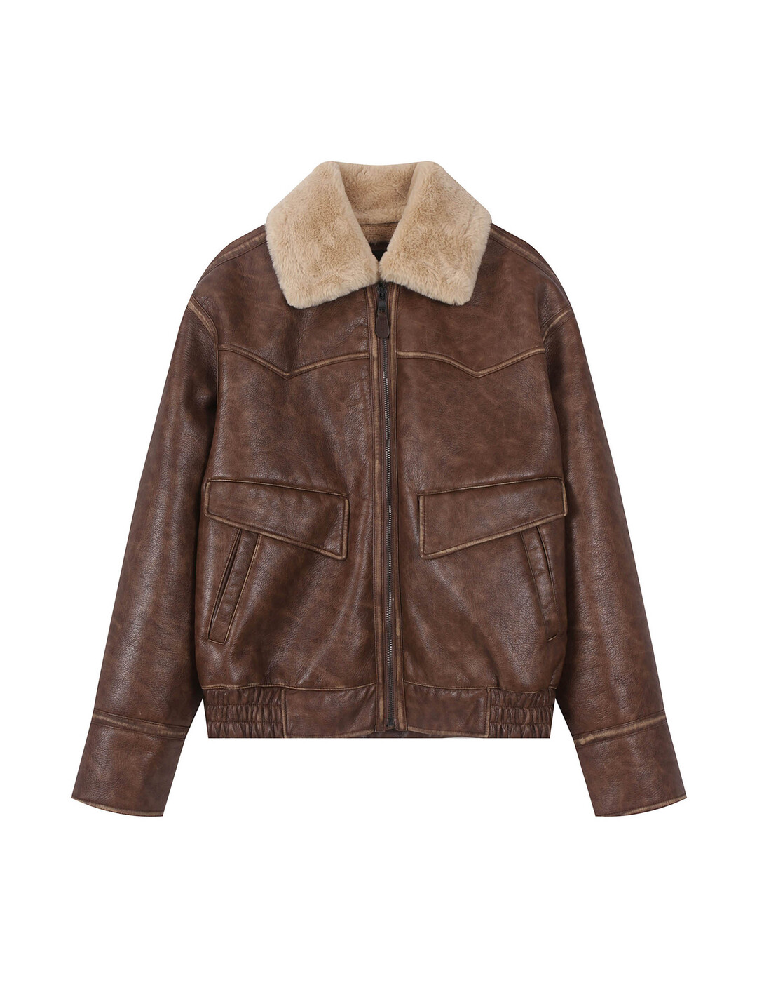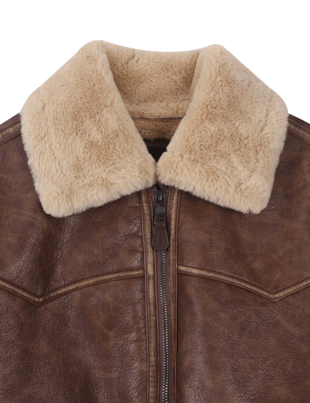 B254LI301P ★멤버십데이 쿠폰 적용상품★ 빈티지 레더 카라 무스탕(B254LI301P)