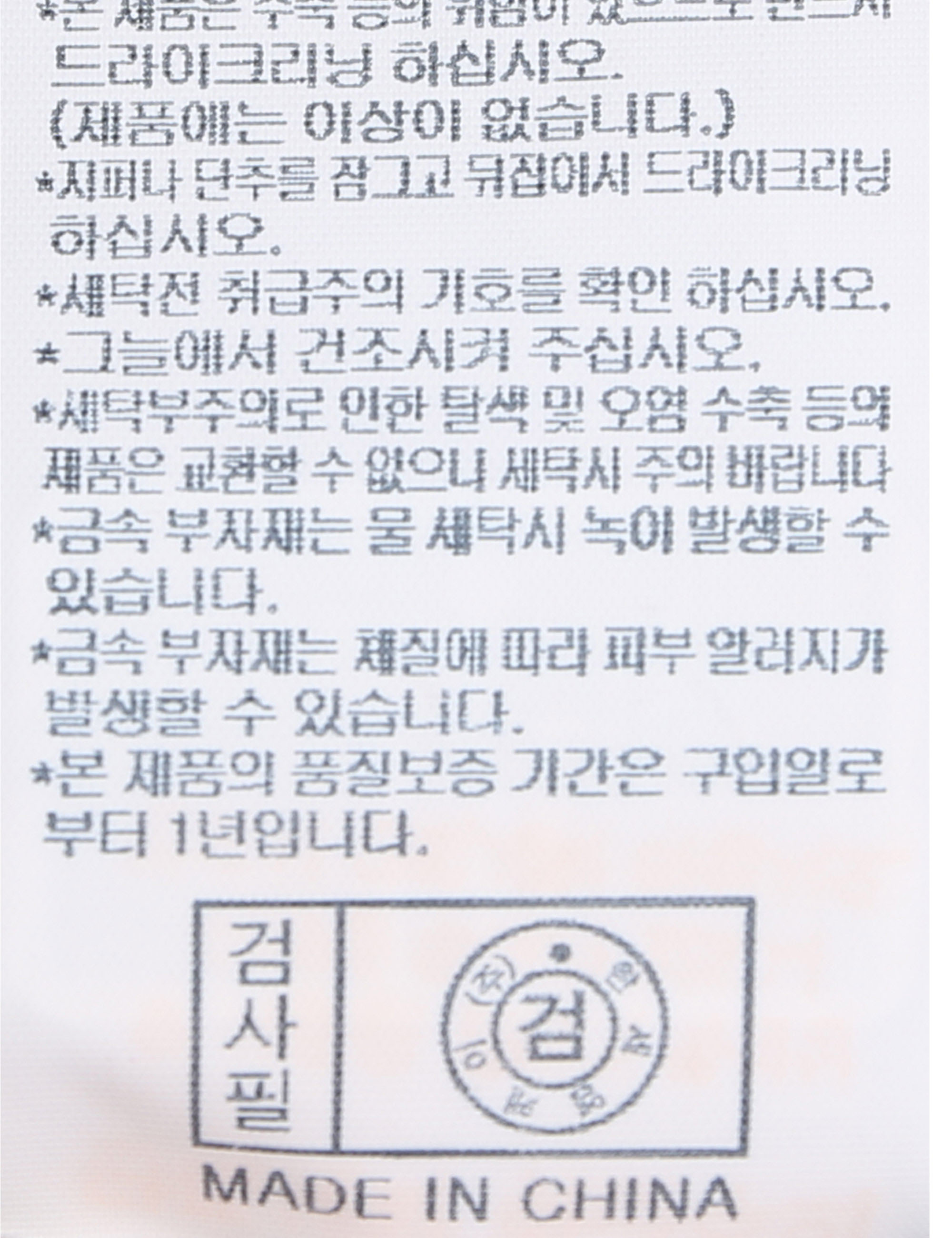 | 세탁방법 및 취급시 주의사항 | 본 제품은 반드시 드라이크리닝 하십시오.(세탁라벨참고) |