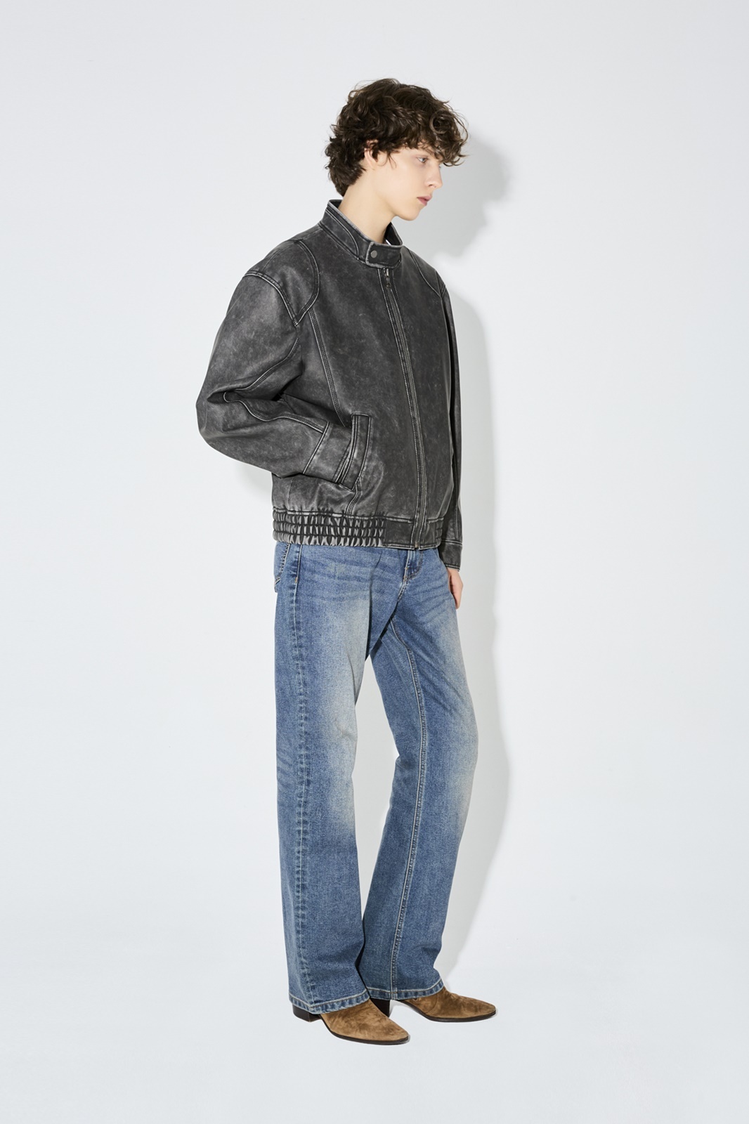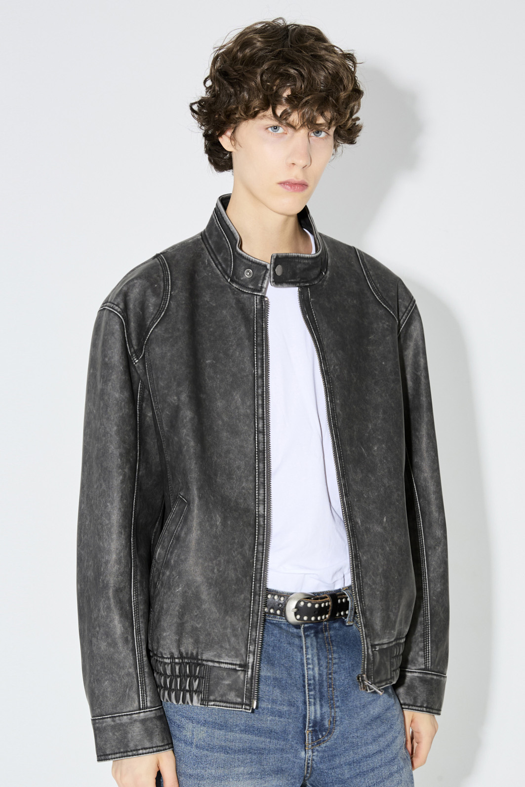 바이오 워싱 작업을 하여 자연스럽게 표면이 까진 빈티지 감성이 물씬나는 아이템