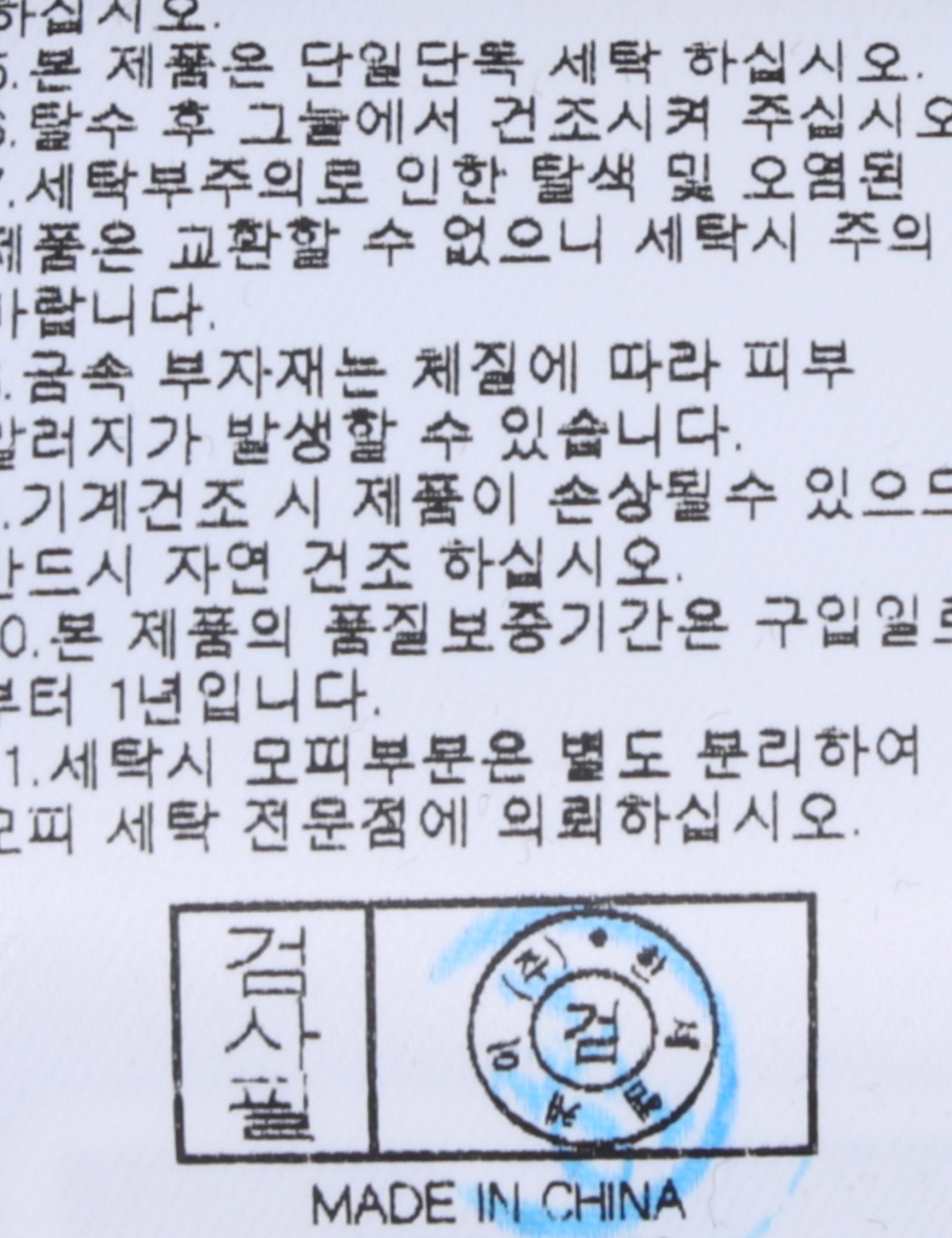| 세탁방법 및 취급시 주의사항 | 본 제품은 손세탁 하십시오.(케어라벨참고) |