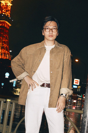 배색 디테일이 돋보이는 빈티지 무드의 남성 페이크 레더 카라 자켓