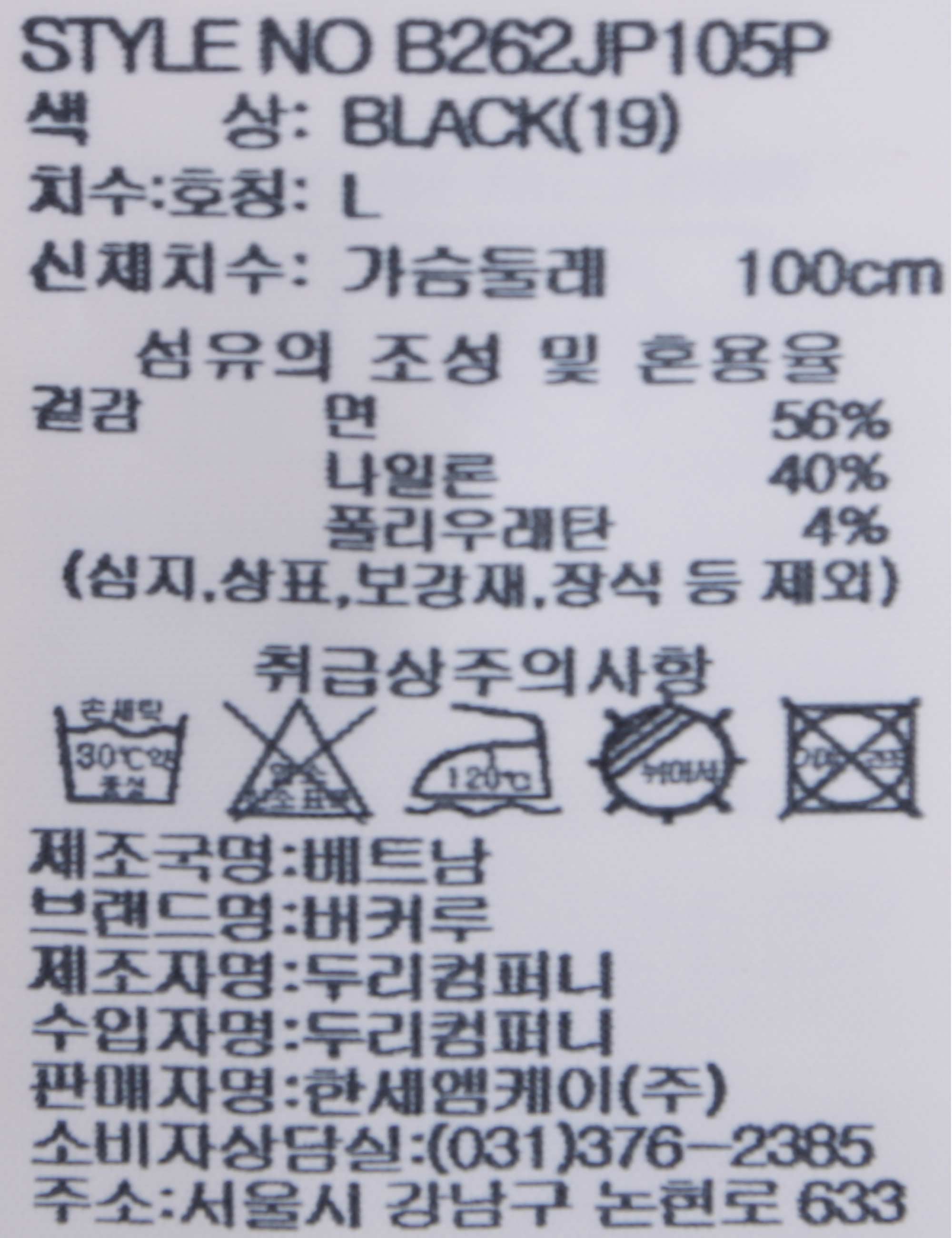 | 세탁방법 및 취급시 주의사항 | 본 제품은 손세탁 하십시오.(케어라벨참고) |
