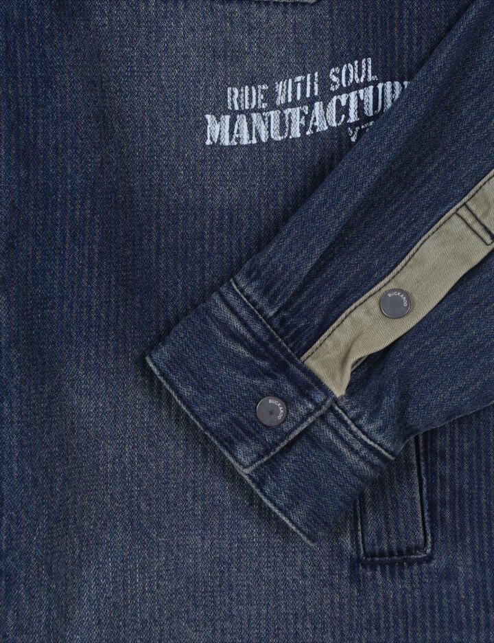 * 앞포켓, 앞단작, 뒷요크, 소매견보루 등의 우븐배색이 몸판 데님원단과 잘 어울어져