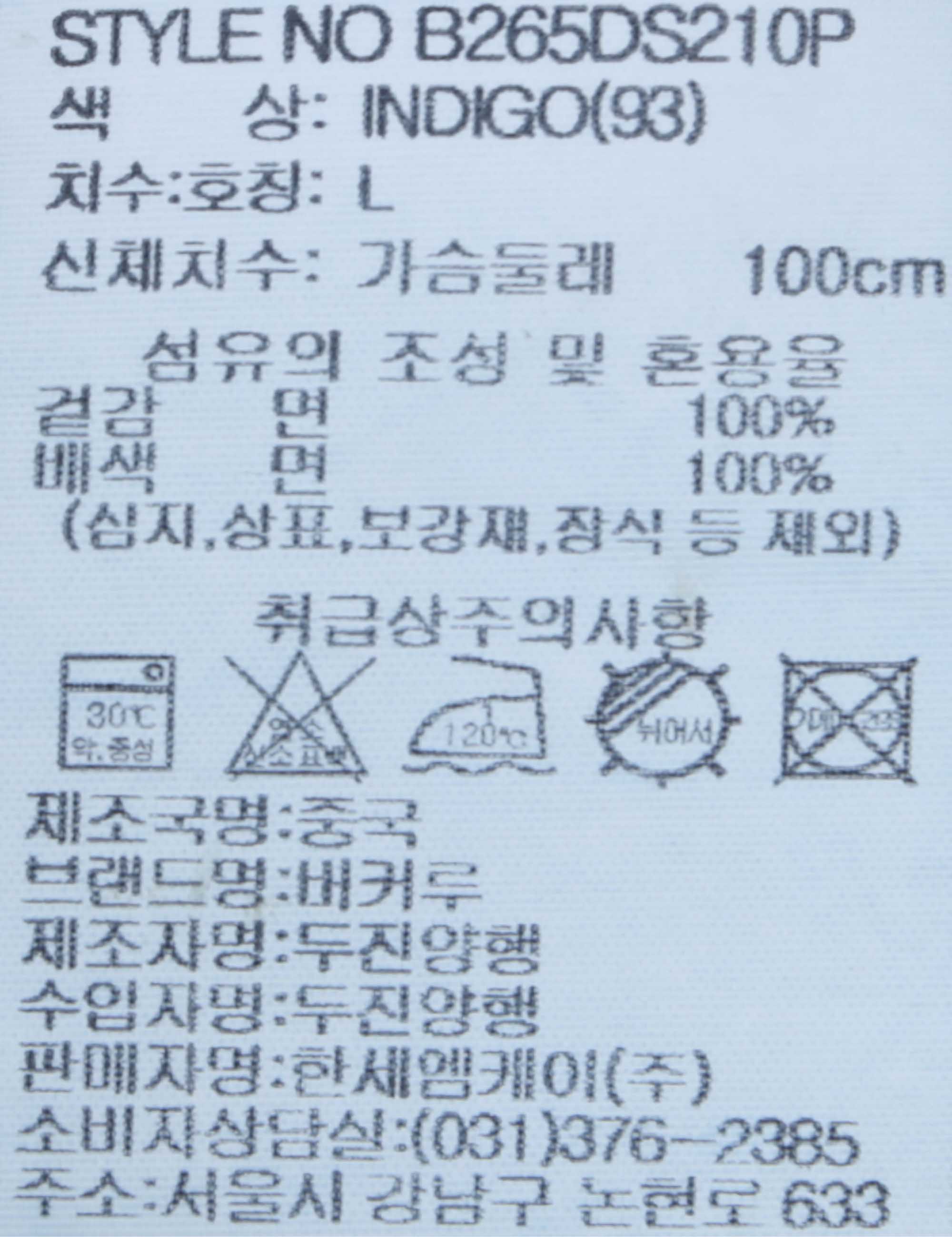 | 상품명 | 우븐 배색 데님 셔켓(B265DS210P) |