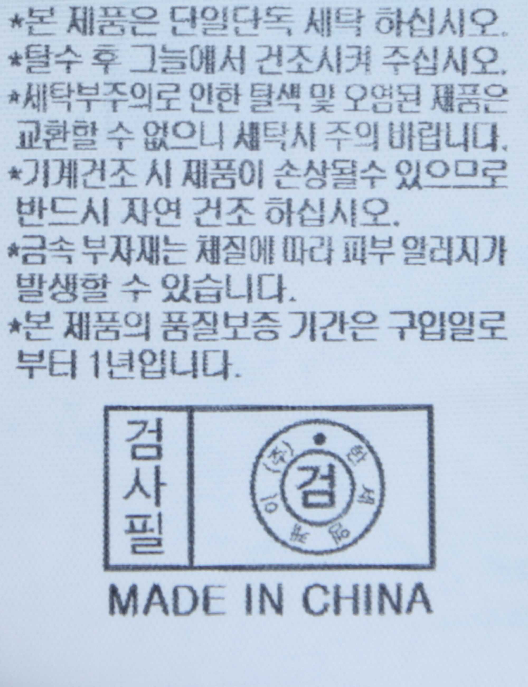 | 세탁방법 및 취급시 주의사항 | 중성세제로 단 시간내에 세탁하십시오.(케어라벨참고) |