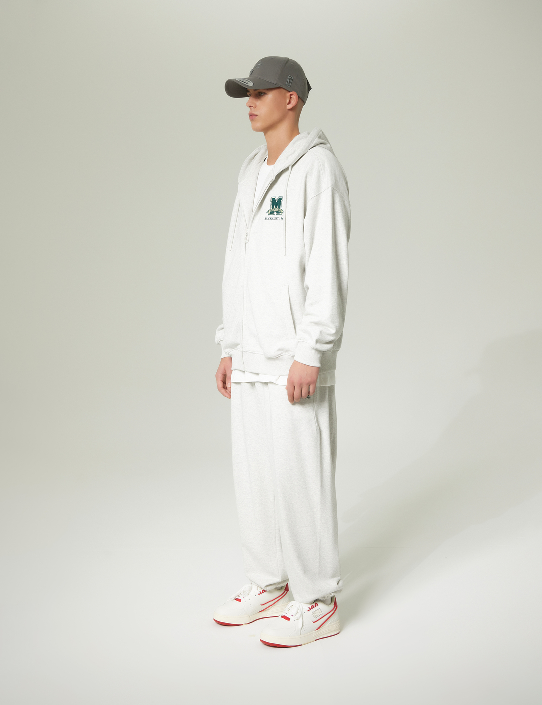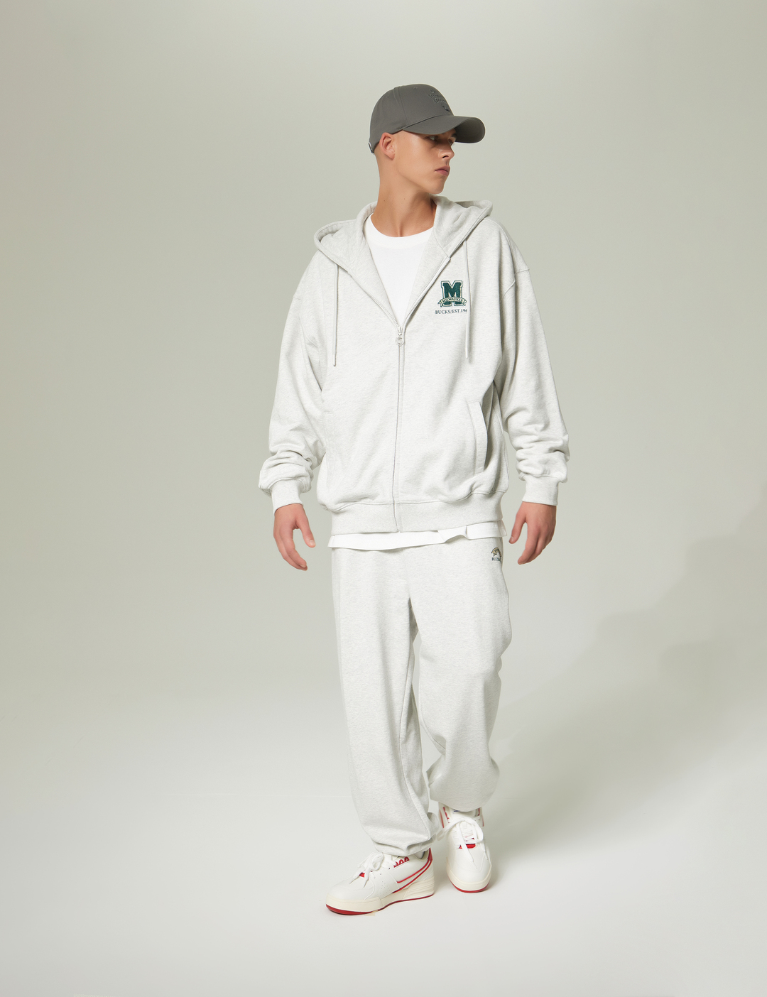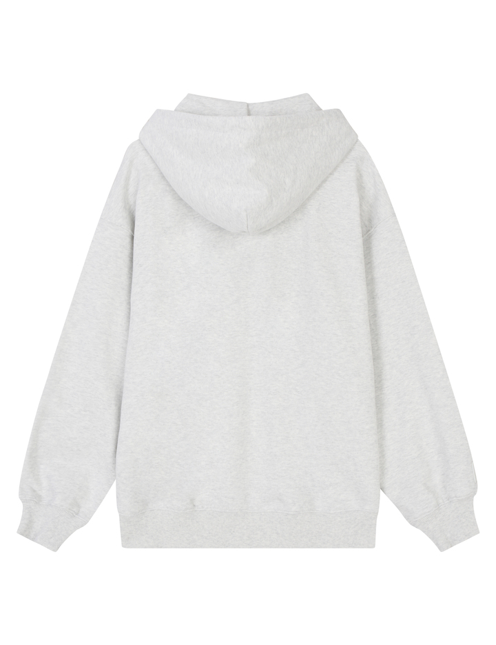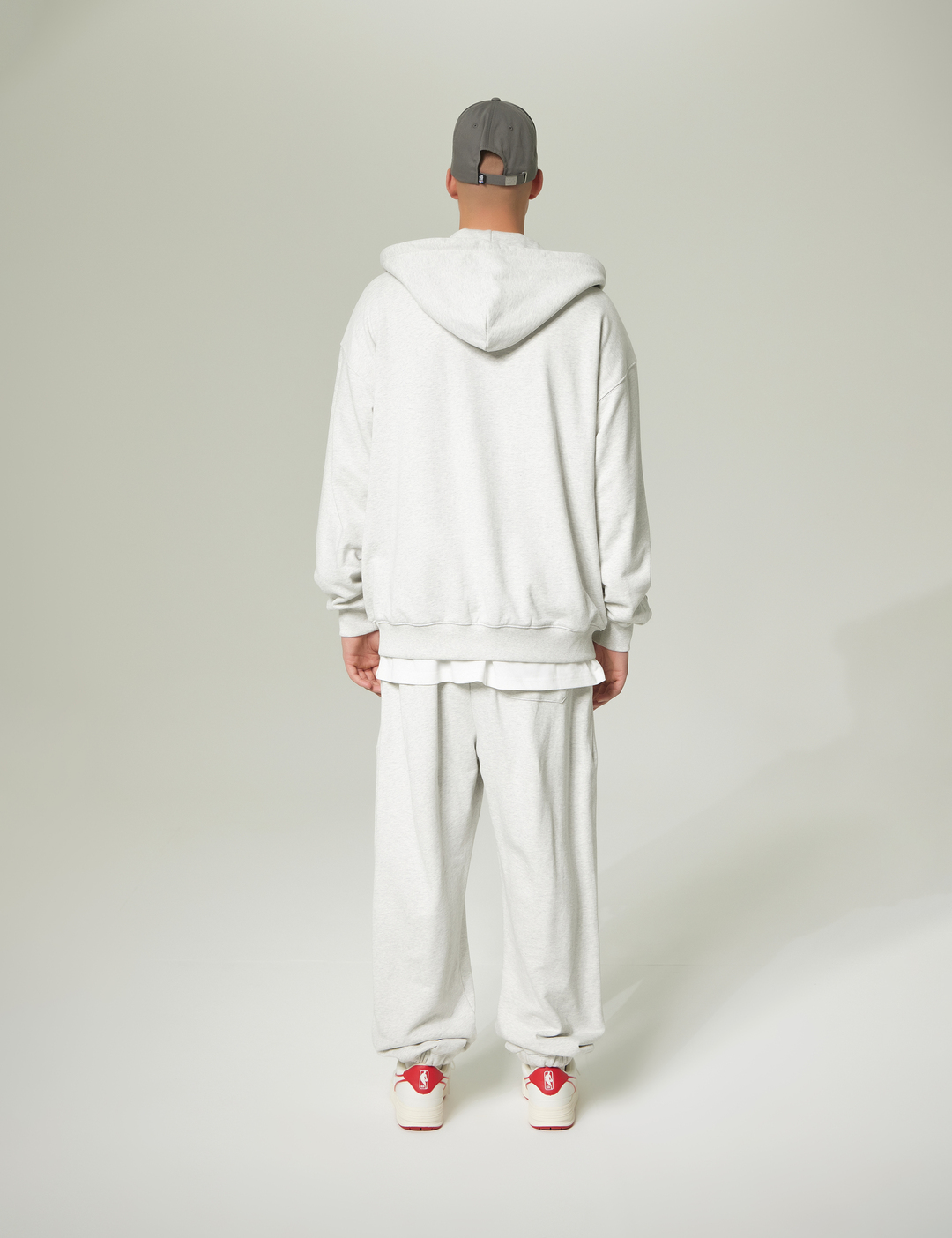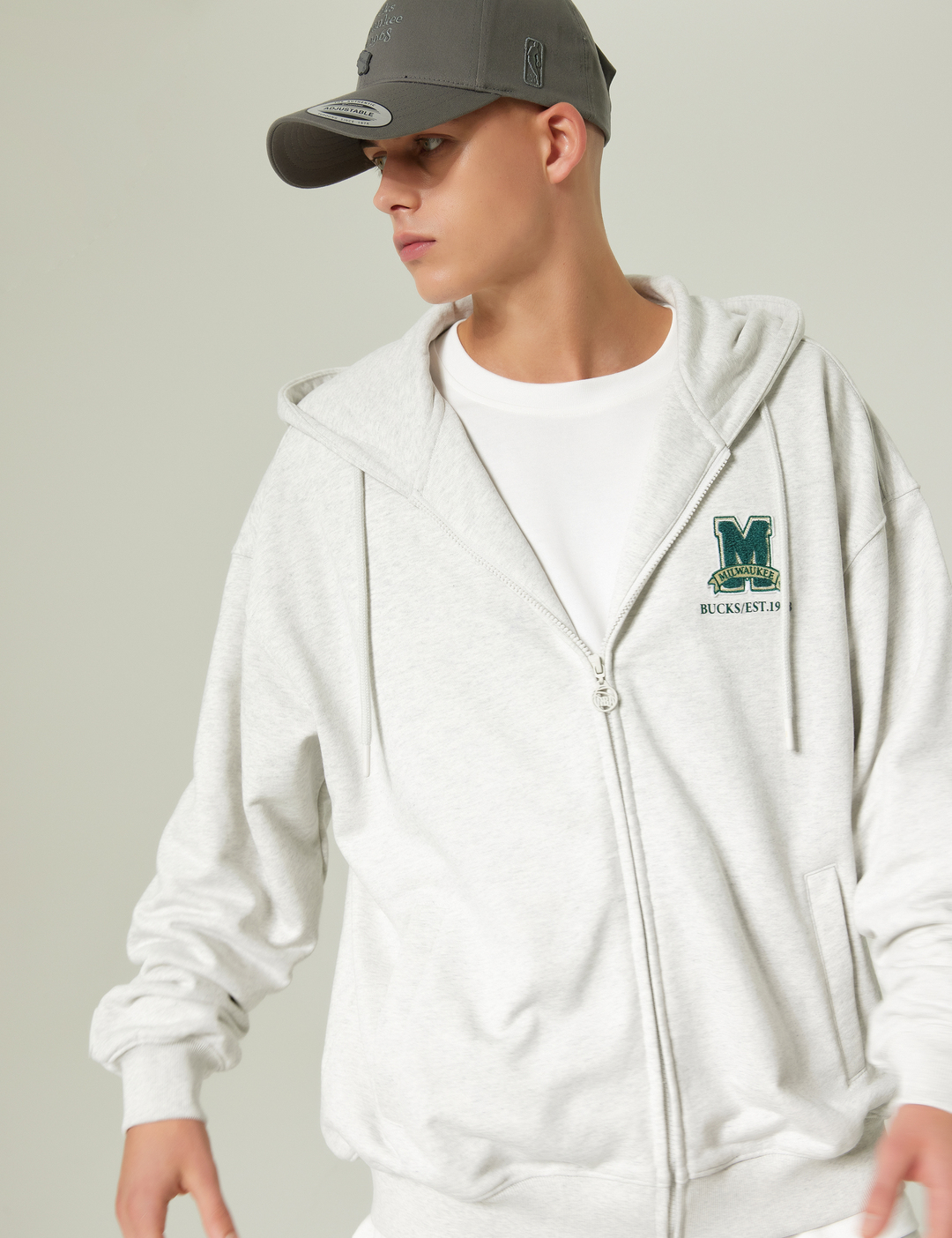 편안한 착용감을 제공하는 오버핏의 후드집업 스타일로