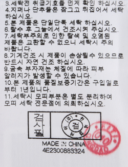 | 세탁방법 및 취급시 주의사항 | 중성세제로 단 시간내에 세탁하십시오.(케어라벨참고) |