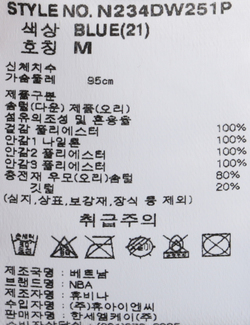 브랜드 홈 바로가기| 제품소재 | [겉감]폴리에스터100% [안감1]나일론100% [안감2]폴리에스터100% [안감3]폴리에스터100% [충전재]우모(오리)솜털80% 깃털20% |