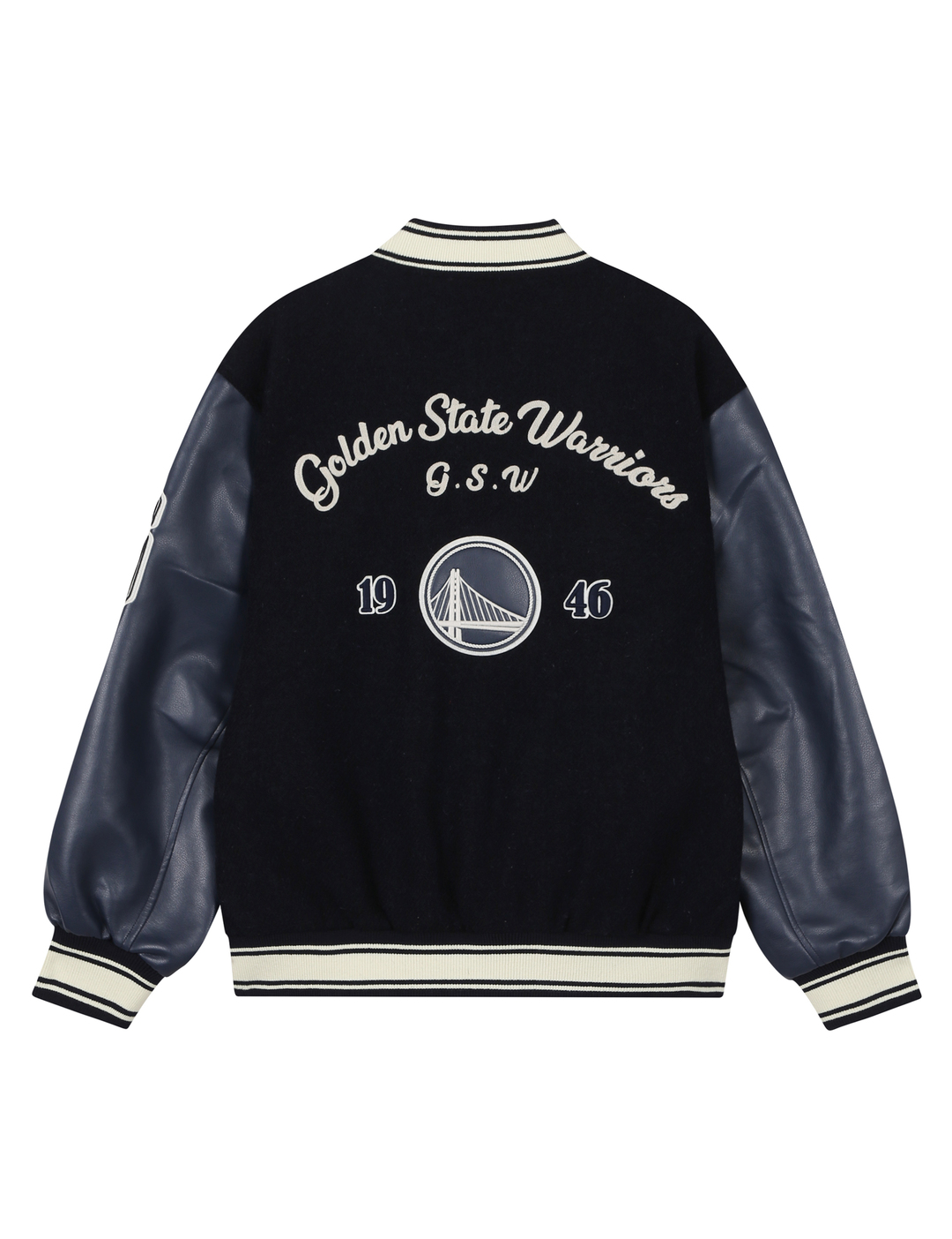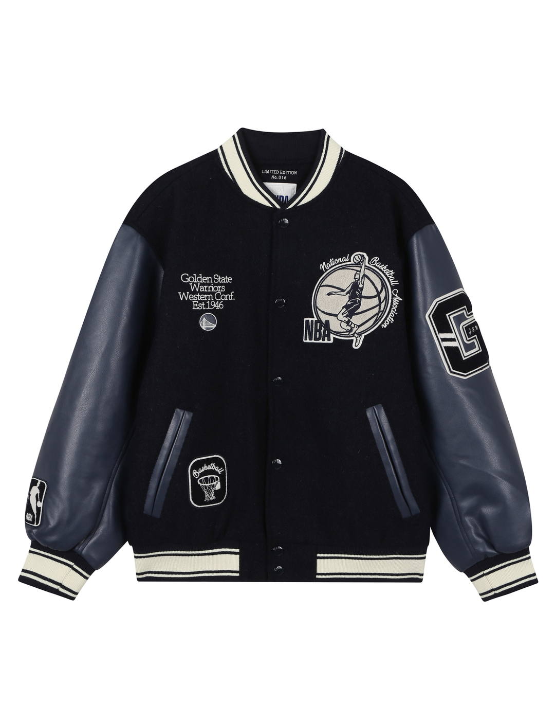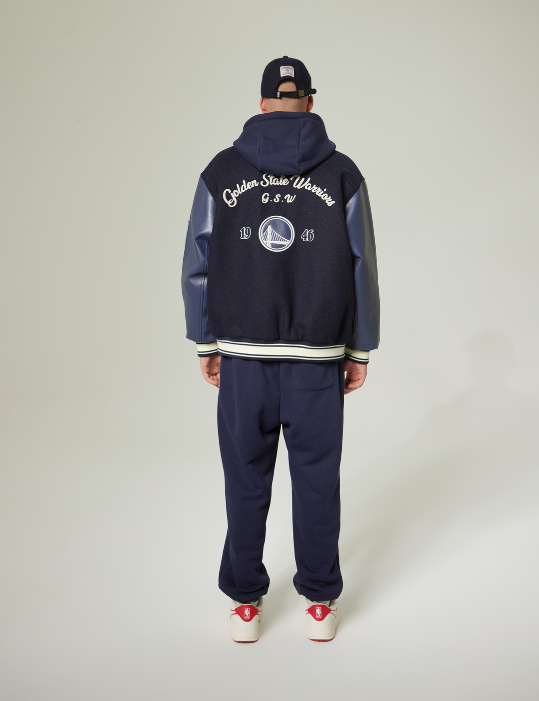 GSW 팀로고와 레터링과 함께 손으로 직접 수놓은 듯한 자수 아트웍이 포인트로 적용됨