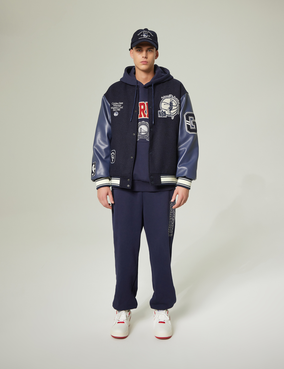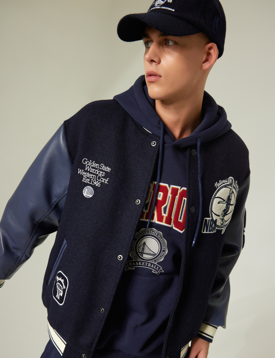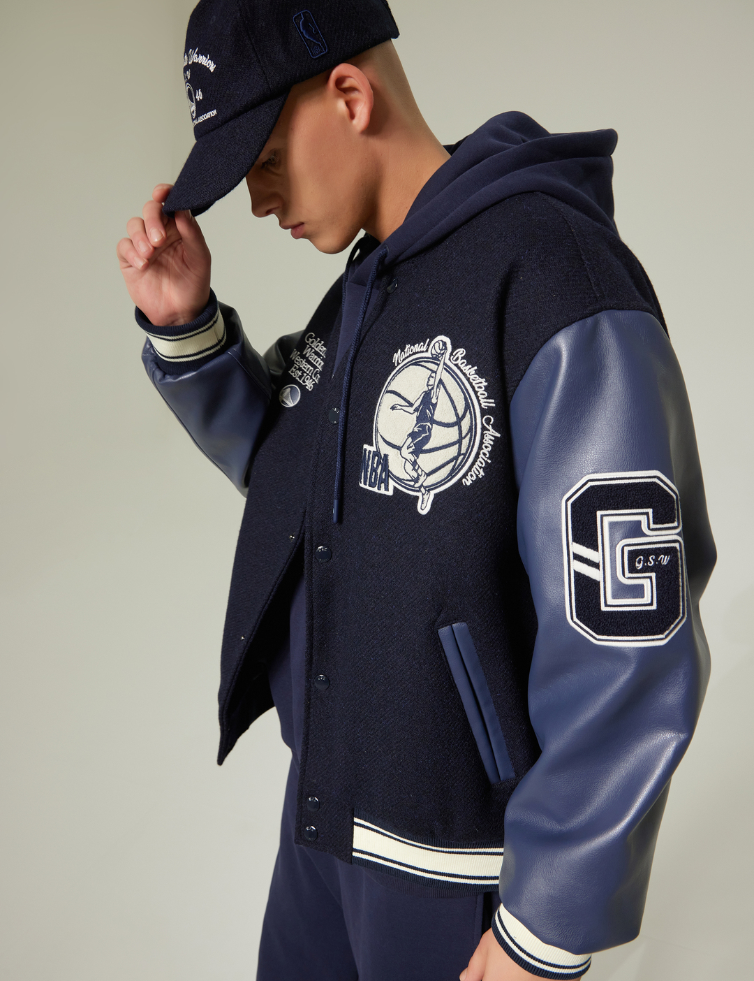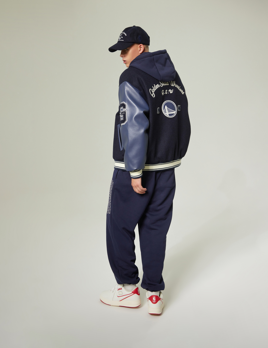 GSW 팀로고와 레터링과 함께 손으로 직접 수놓은 듯한 자수 아트웍이 포인트로 적용됨