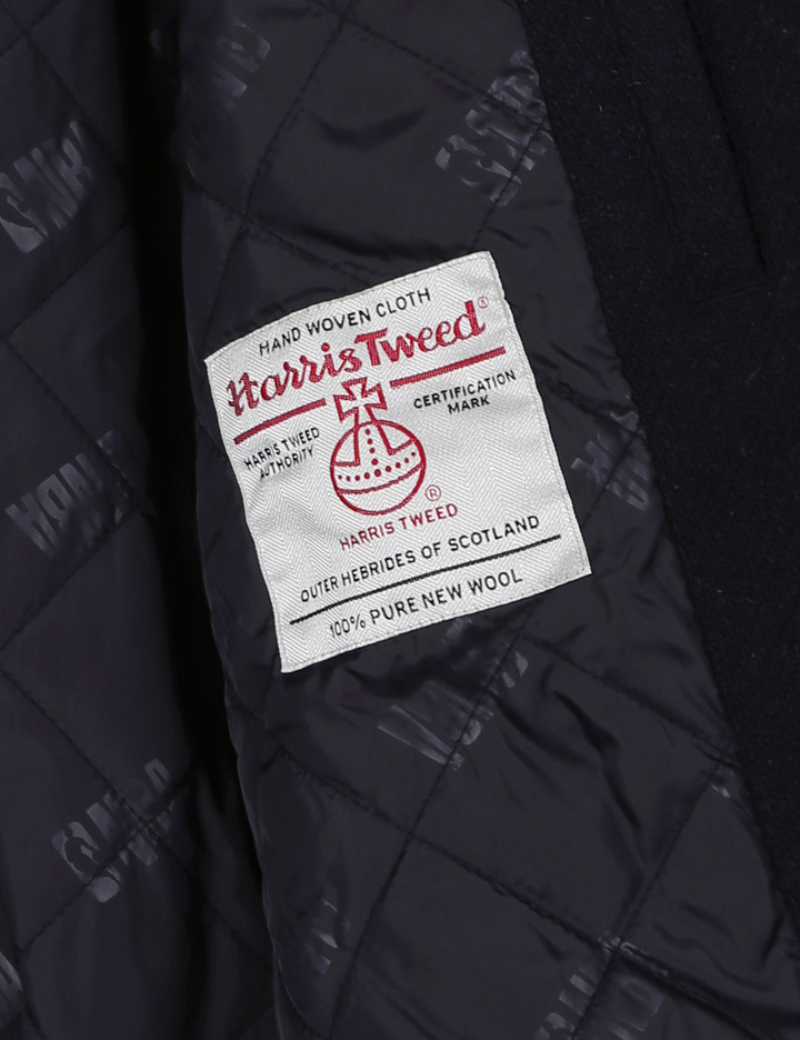 수작업으로 만들어진 고품질의 울 소재 해리스 트위드와 에코 레더 소매 배색으로 가볍고 따뜻한 착용감을 제안함