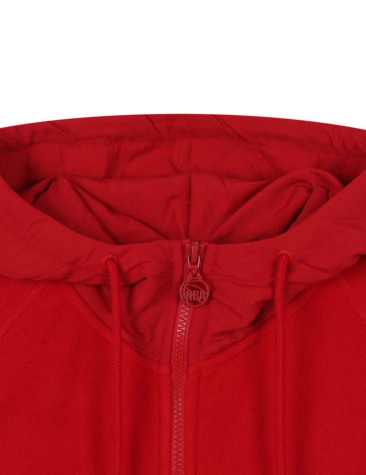 소프트한 터치감의 폴라폴리스 원단에 나일론 원단을 배색하여 캐주얼함과 트렌디함이 돋보이는 착장으로 연출 가능한 후드 집업.