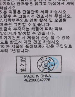 | 세탁방법 및 취급시 주의사항 | 본 제품은 손세탁 하십시오.(케어라벨참고) |