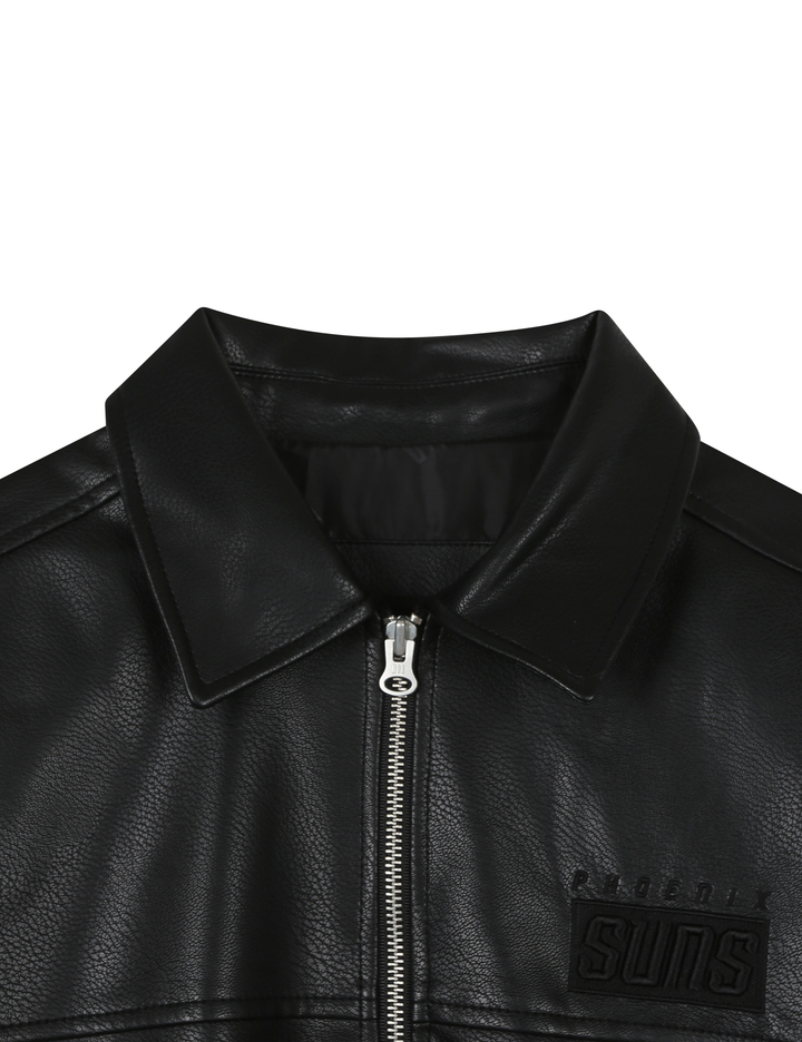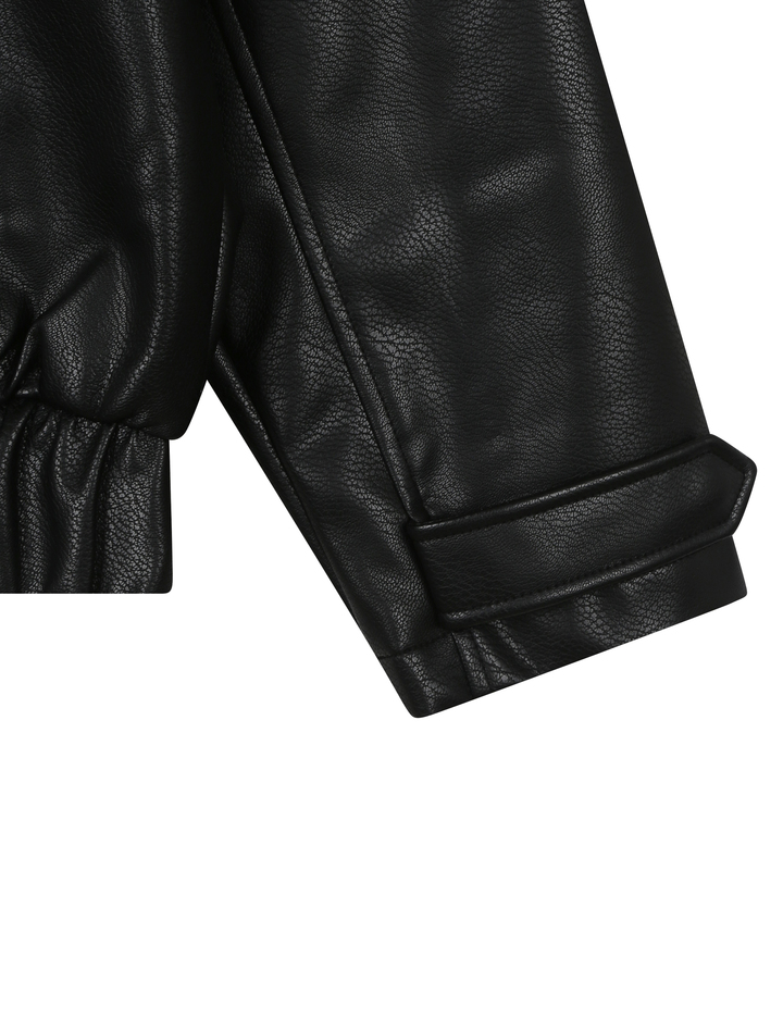 봄 간절기 시즌에 가볍게 착용하기 좋은 아이템으로 인조가죽을 사용하여 트렌디한 착장이 가능함