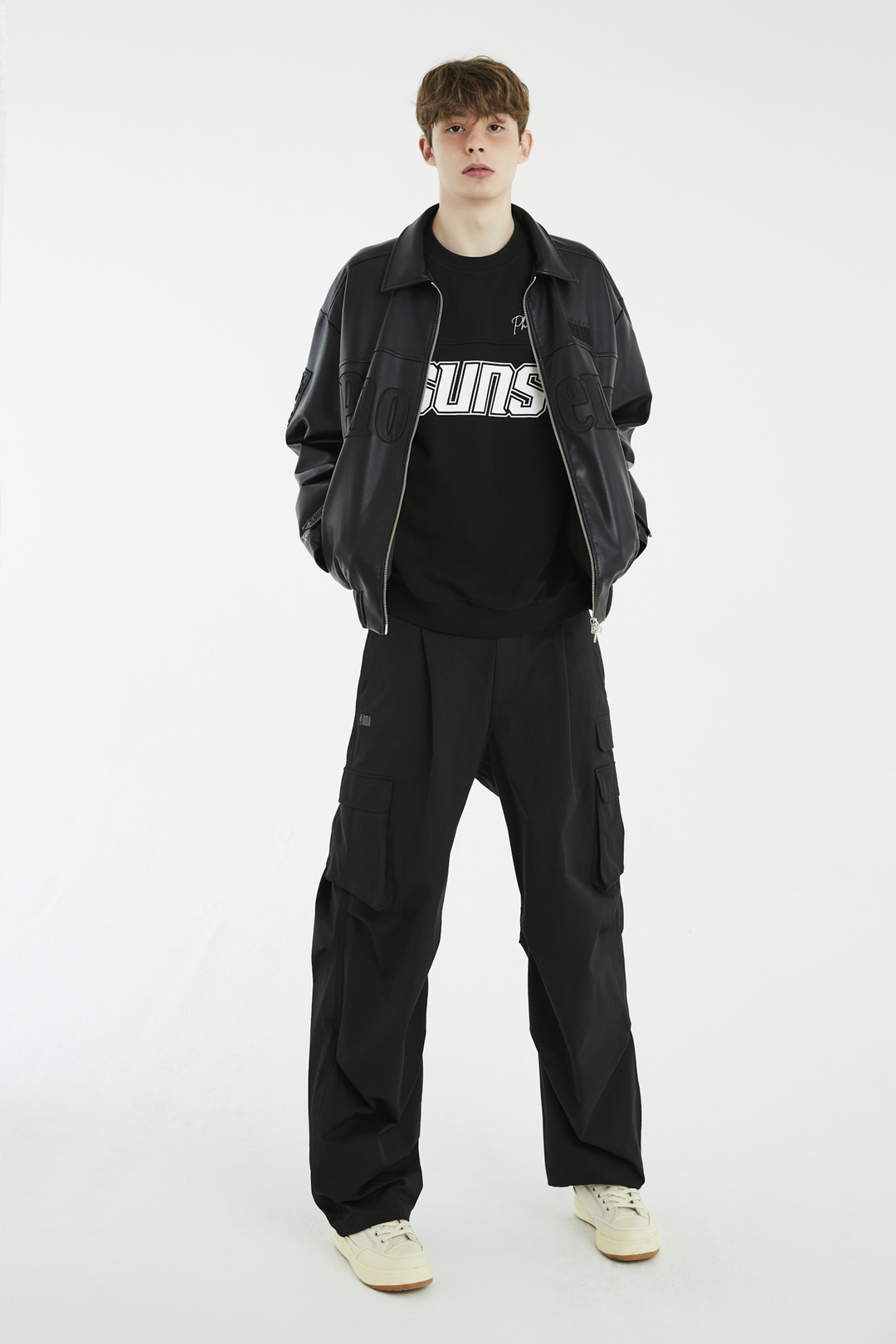전체적으로 넉넉한 사이즈로 작업 된 오버핏으로 편안하게 착장이 가능하면서 스트릿하게 연출가능하고