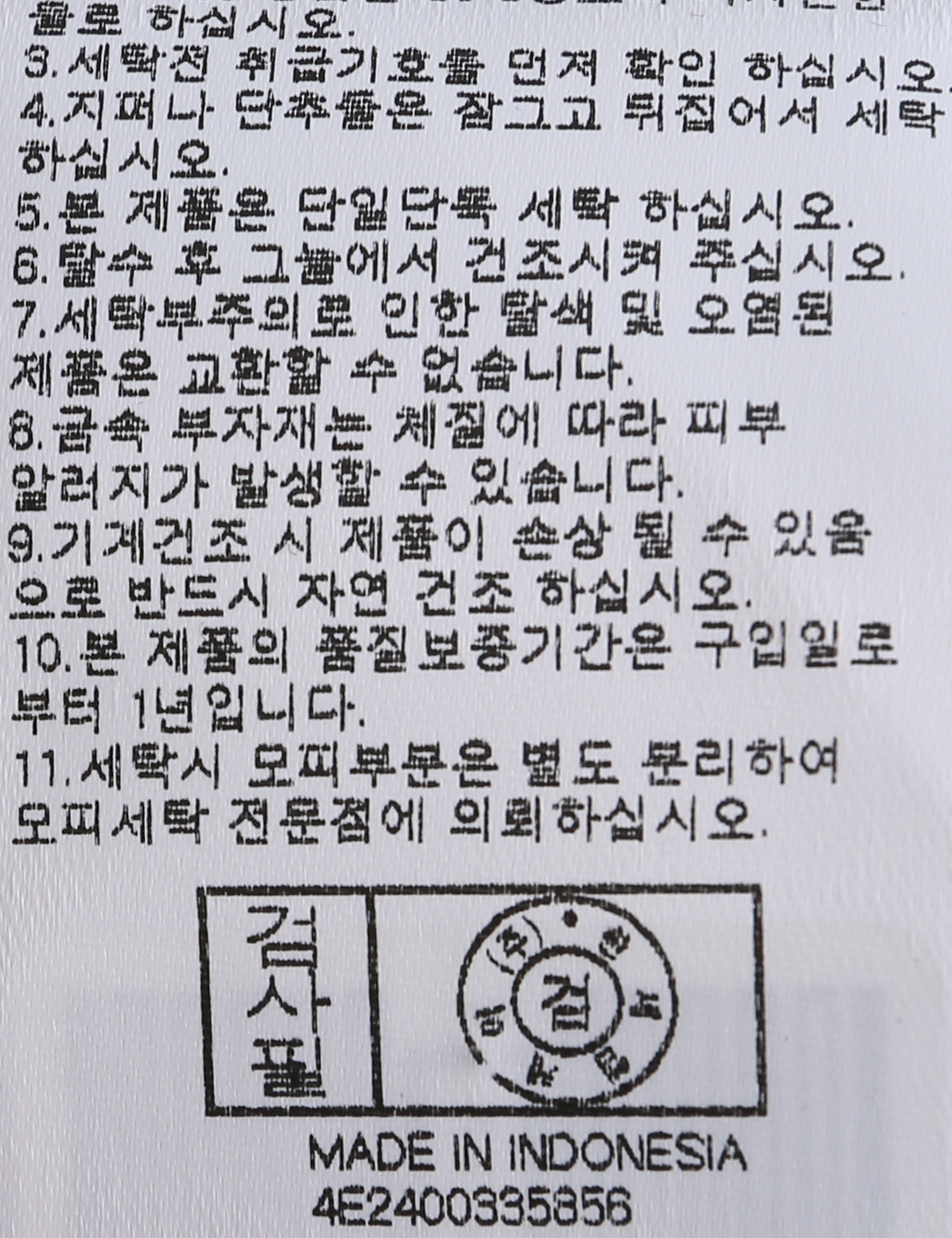 | 세탁방법 및 취급시 주의사항 | 본 제품은 손세탁 하십시오.(케어라벨참고) |