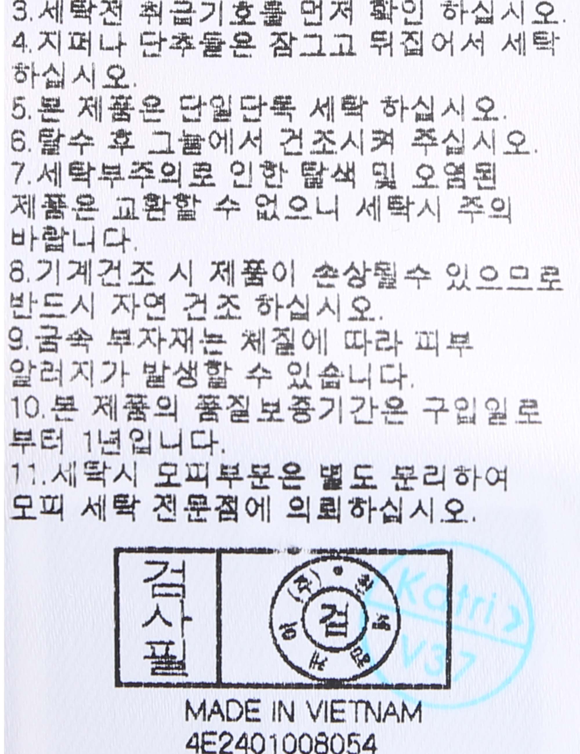 | 세탁방법 및 취급시 주의사항 | 중성세제로 단 시간내에 세탁하십시오.(케어라벨참고) |