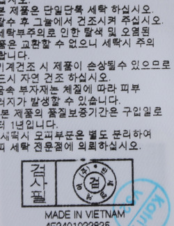 | 세탁방법 및 취급시 주의사항 | 중성세제로 단 시간내에 세탁하십시오.(케어라벨참고) |