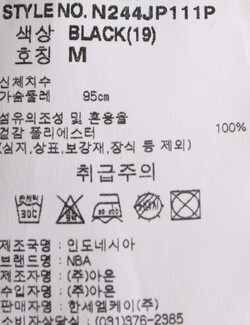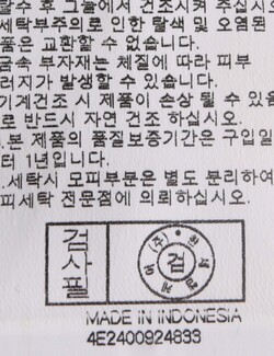 | 세탁방법 및 취급시 주의사항 | 본 제품은 손세탁 하십시오.(케어라벨참고) |