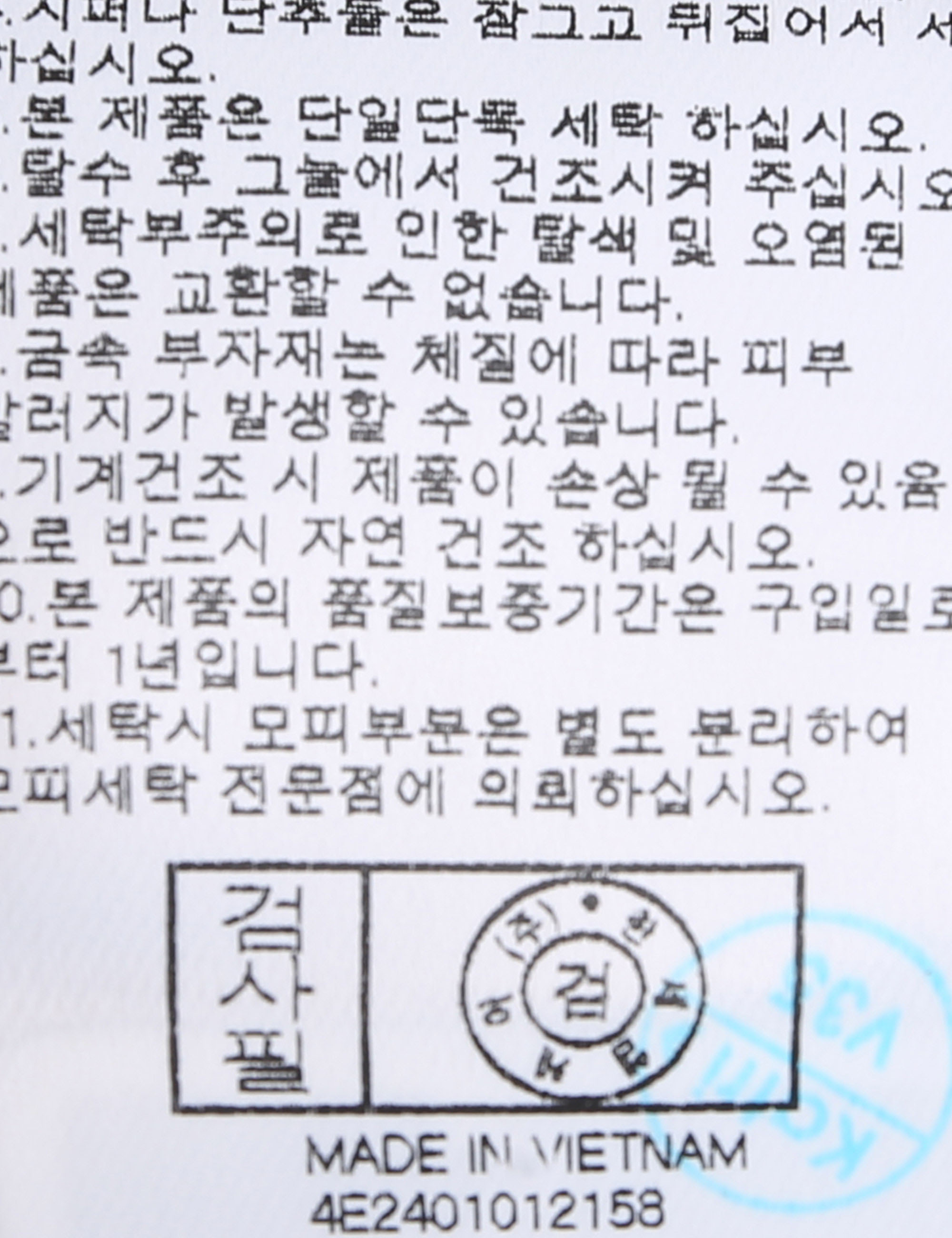 | 세탁방법 및 취급시 주의사항 | 본 제품은 손세탁 하십시오.(케어라벨참고) |