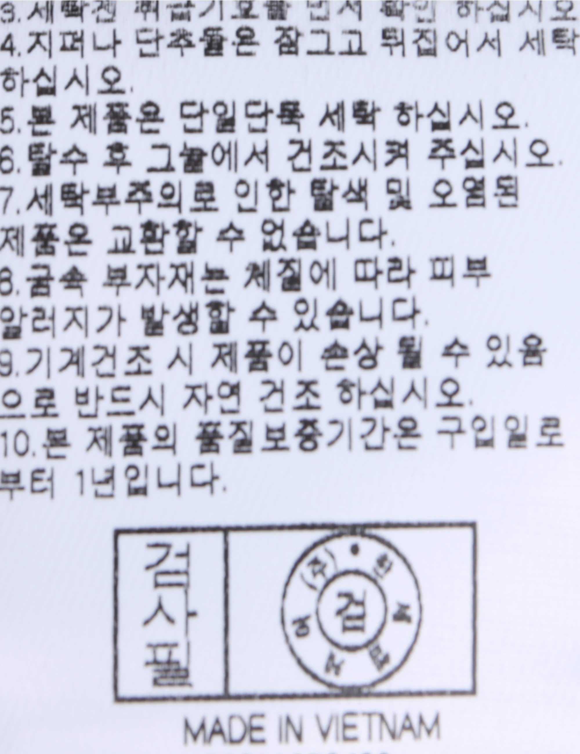 | 세탁방법 및 취급시 주의사항 | 본 제품은 손세탁 하십시오.(케어라벨참고) |
