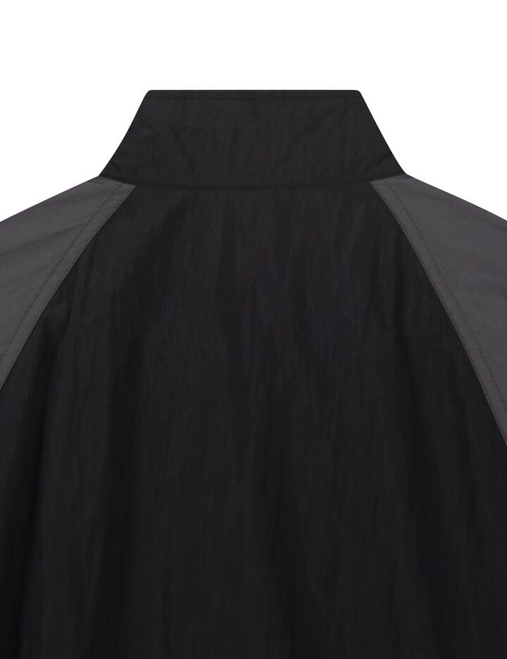 겉감(나일론 100%): 가볍고 부드러운 터치감을 제공하며 간절기에 활용하기 좋은 소재. 배색(나일론 100%): 메인 원단과 조화로운 배색으로 스포티한 디자인을 완성함. 안감(폴리에스터 100%): 매끄러운 안감 처리로 착용 시 걸림 없는 편안함 제공.