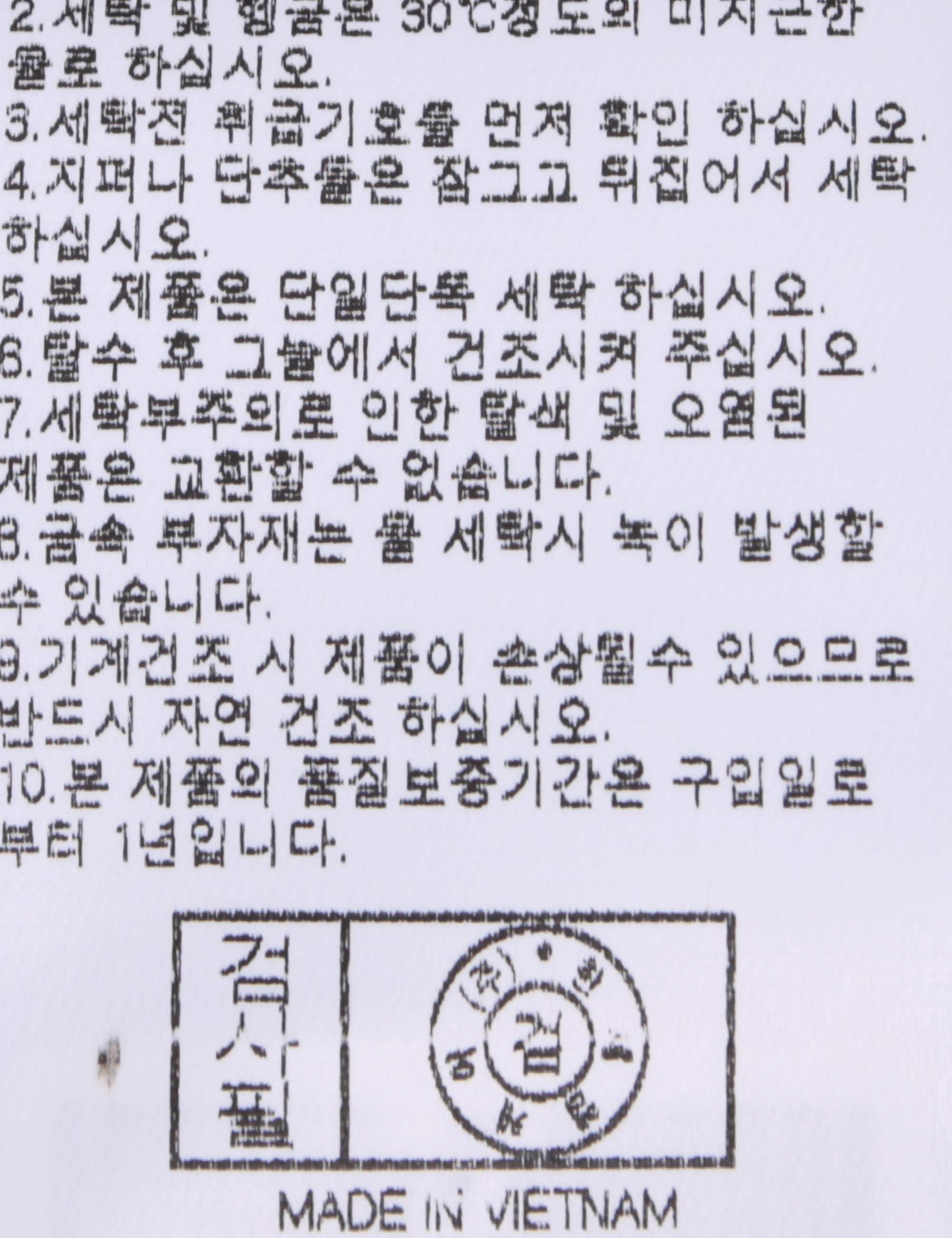 | 세탁방법 및 취급시 주의사항 | 본 제품은 손세탁 하십시오.(케어라벨참고) |