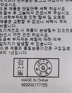 | 세탁방법 및 취급시 주의사항 | 중성세제로 단 시간내에 세탁하십시오.(케어라벨참고) |