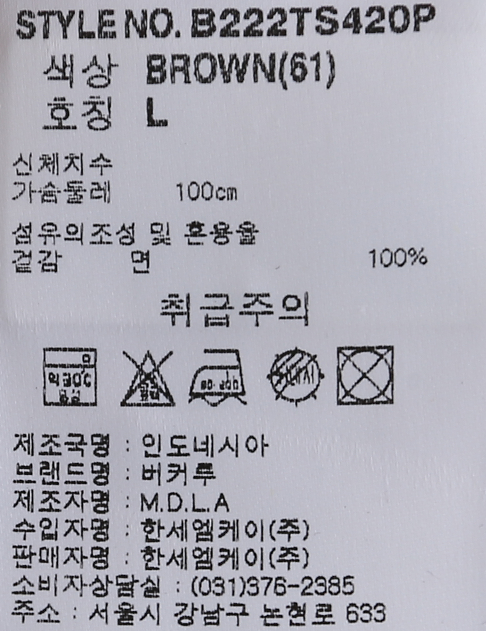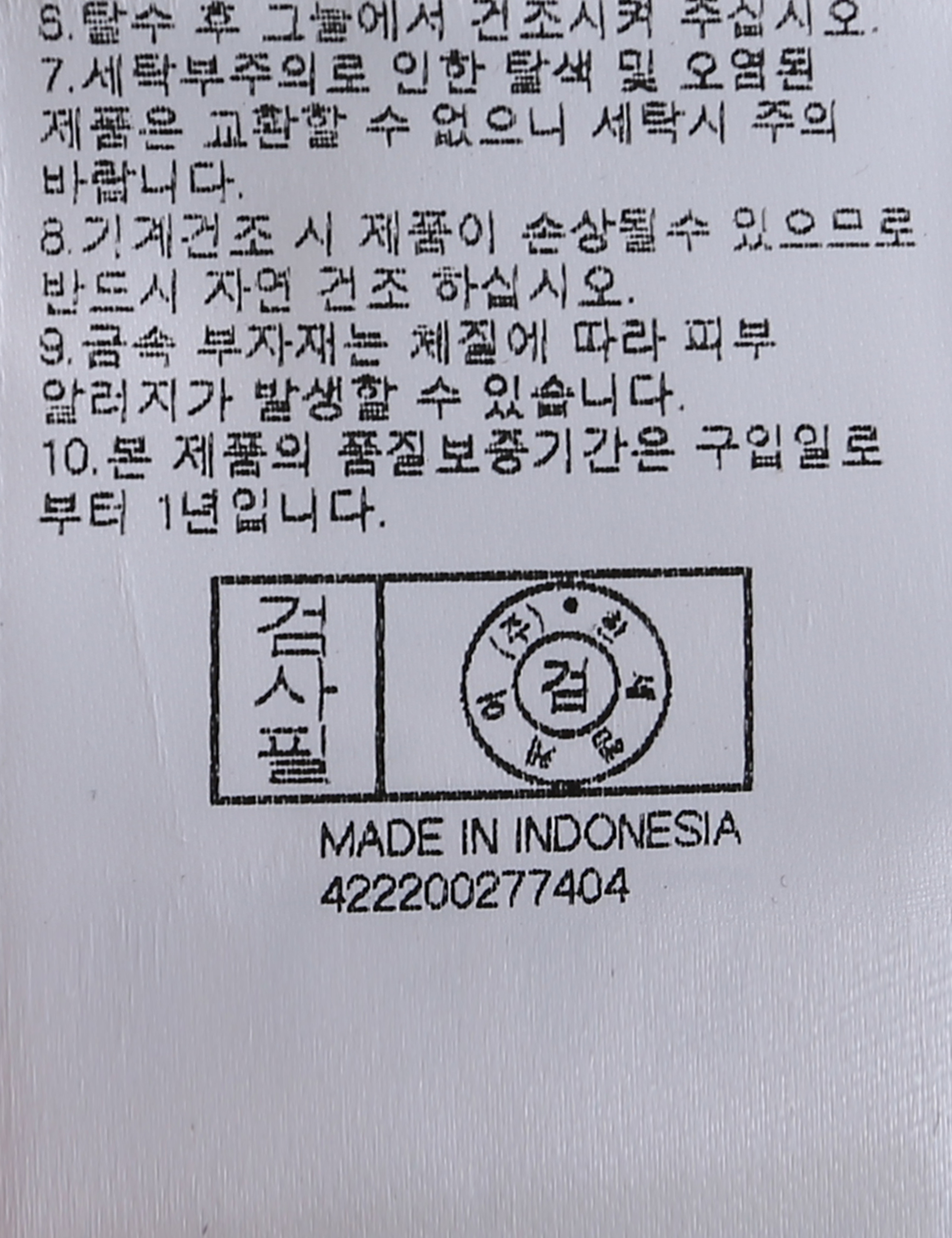 | 세탁방법 및 취급시 주의사항 | 중성세제로 단 시간내에 세탁하십시오.(케어라벨참고) |