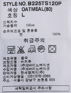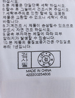 세탁방법 및 취급시 주의사항 중성세제로 단 시간내에 세탁하십시오.(케어라벨참고)