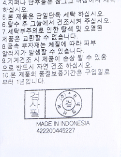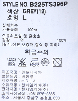 | 세탁방법 및 취급시 주의사항 | 본 제품은 손세탁 하십시오.(케어라벨참고) |