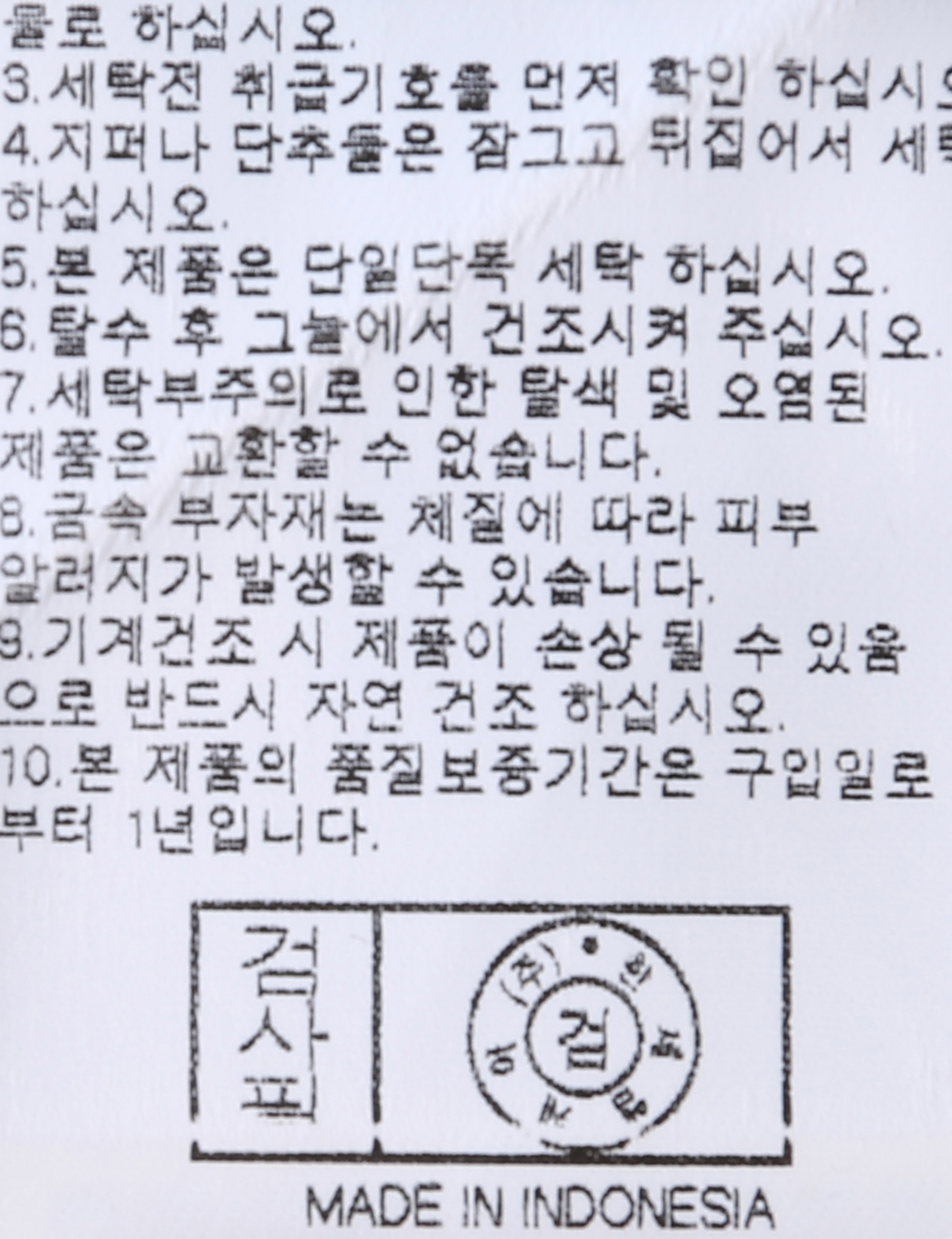 | 세탁방법 및 취급시 주의사항 | 본 제품은 손세탁 하십시오.(케어라벨참고) |