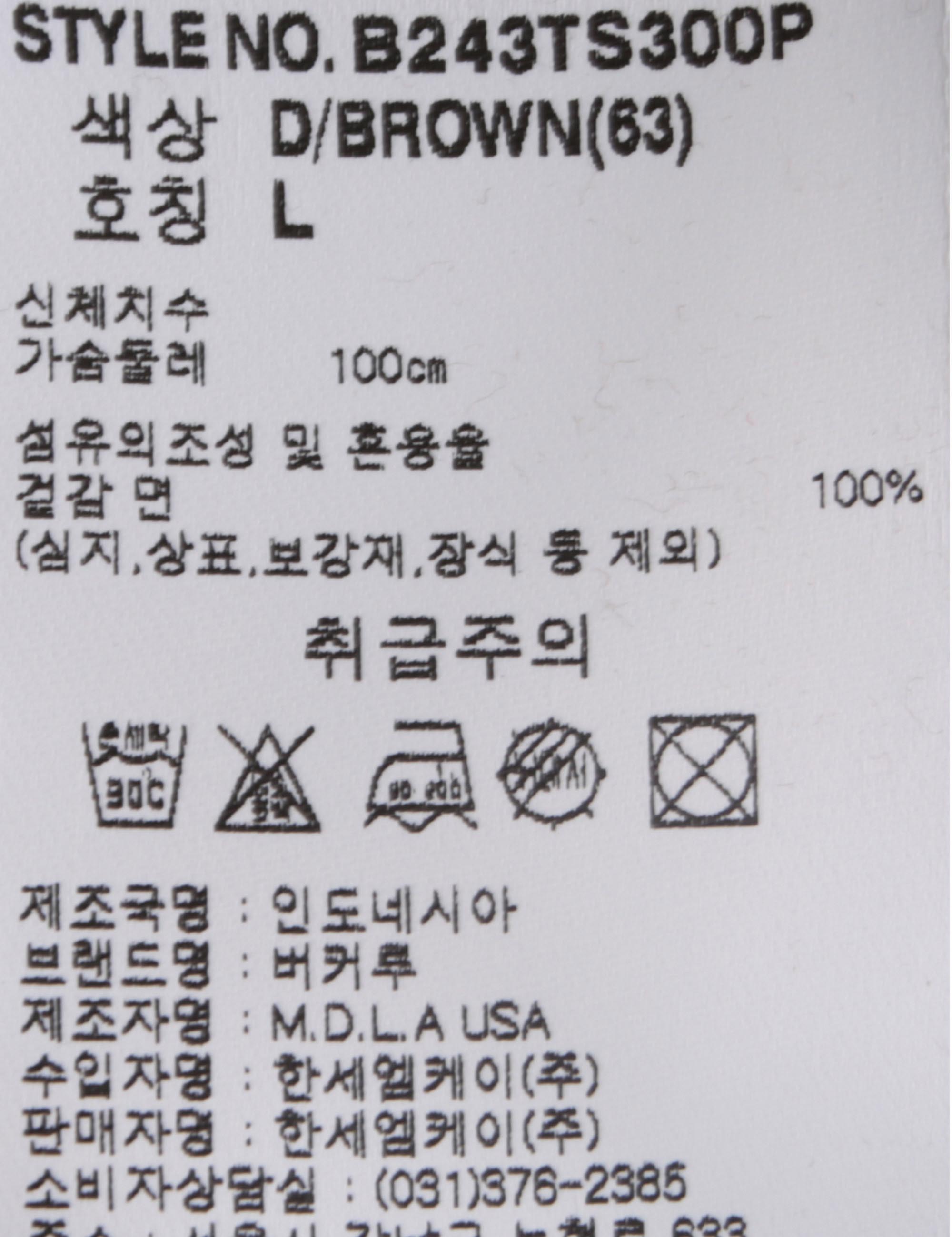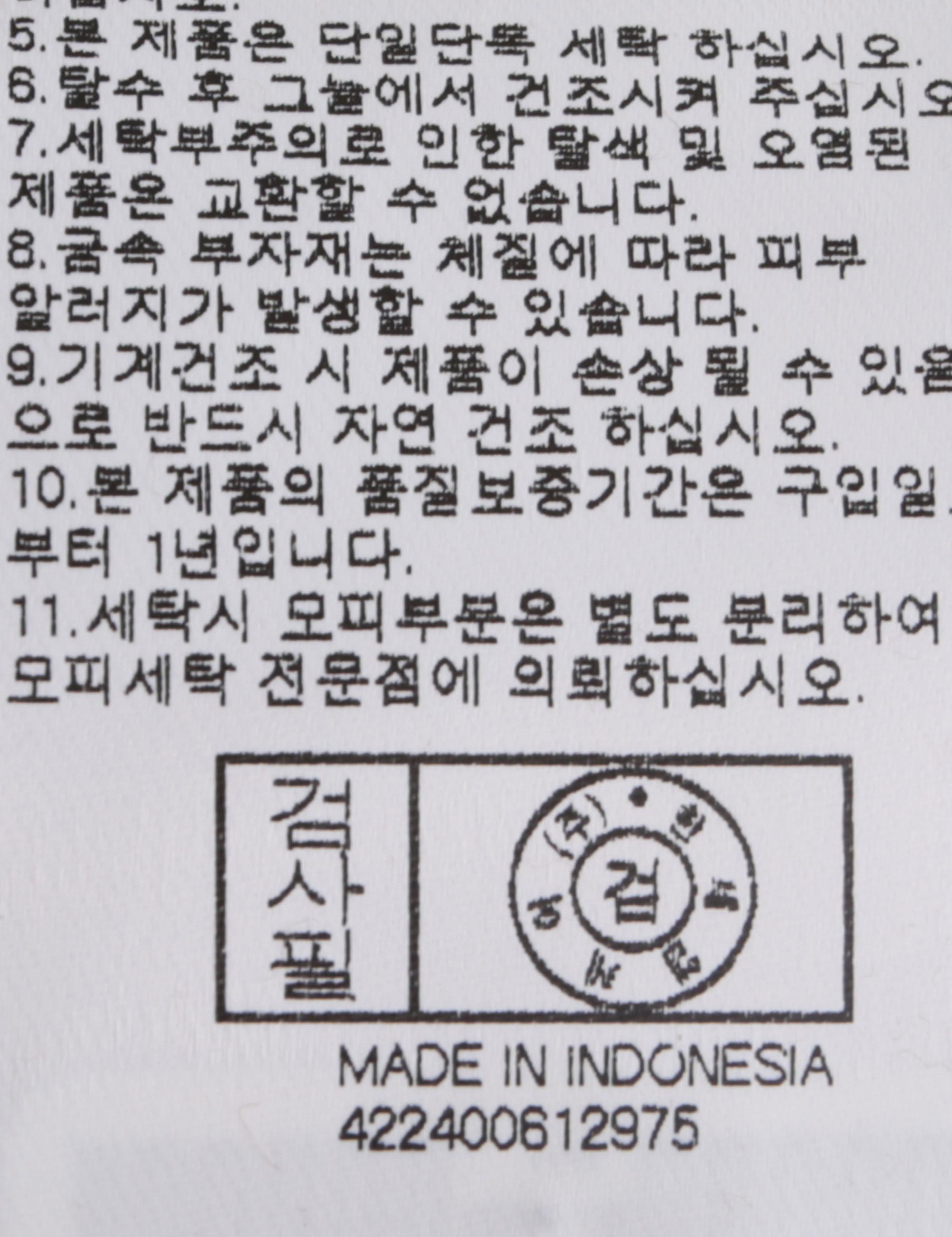 | 세탁방법 및 취급시 주의사항 | 본 제품은 손세탁 하십시오.(케어라벨참고) |