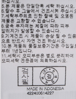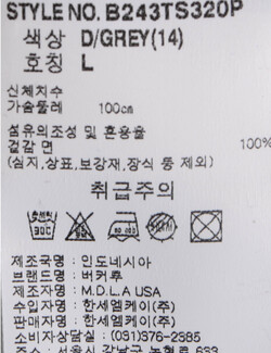 | 세탁방법 및 취급시 주의사항 | 본 제품은 손세탁 하십시오.(케어라벨참고) |