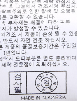 | 세탁방법 및 취급시 주의사항 | 본 제품은 손세탁 하십시오.(케어라벨참고) |