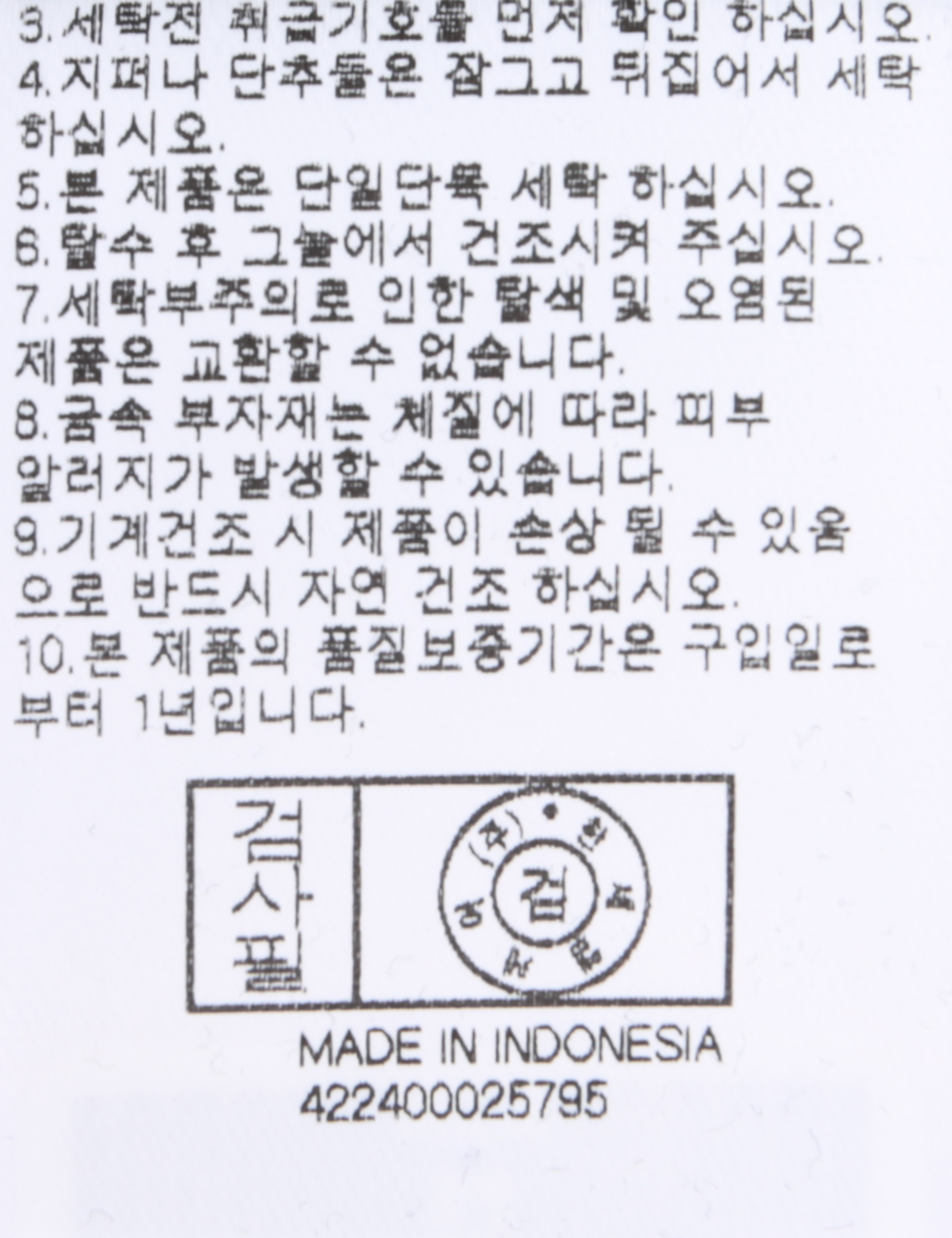 세탁방법 및 취급시 주의사항 본 제품은 손세탁 하십시오.(케어라벨참고)