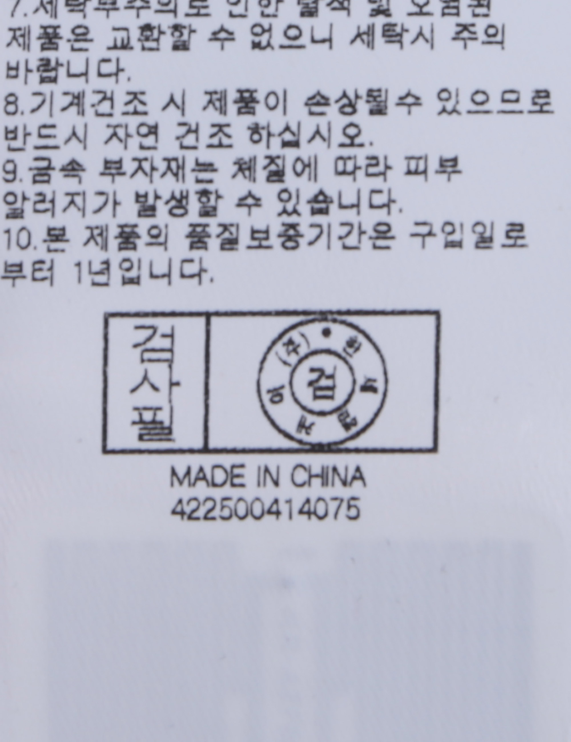 | 세탁방법 및 취급시 주의사항 | 중성세제로 단 시간내에 세탁하십시오.(케어라벨참고) |