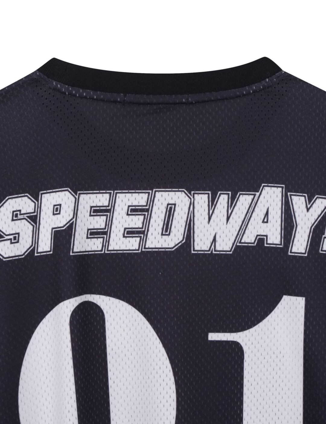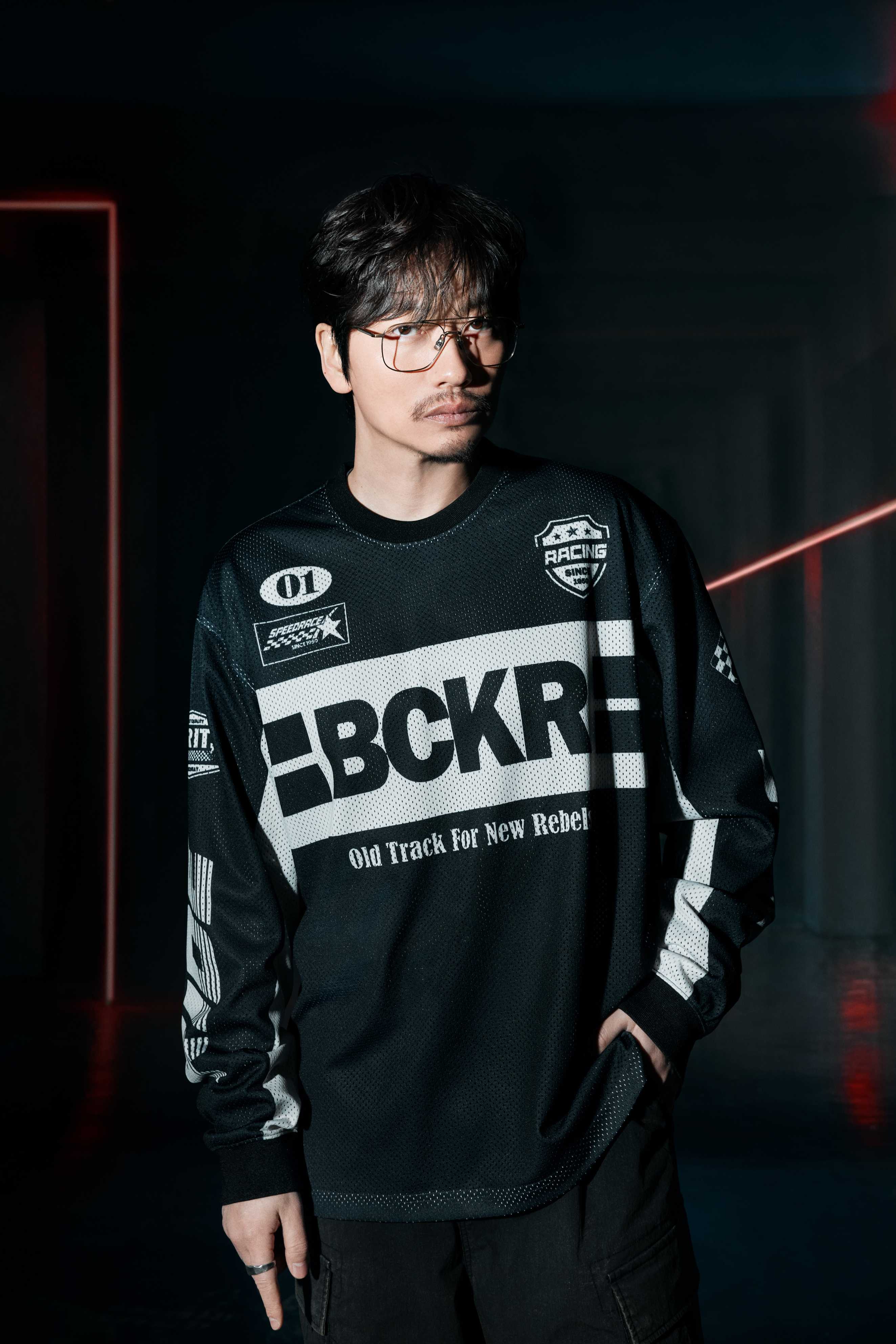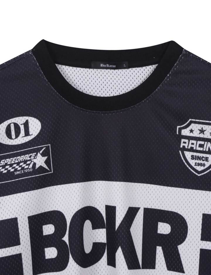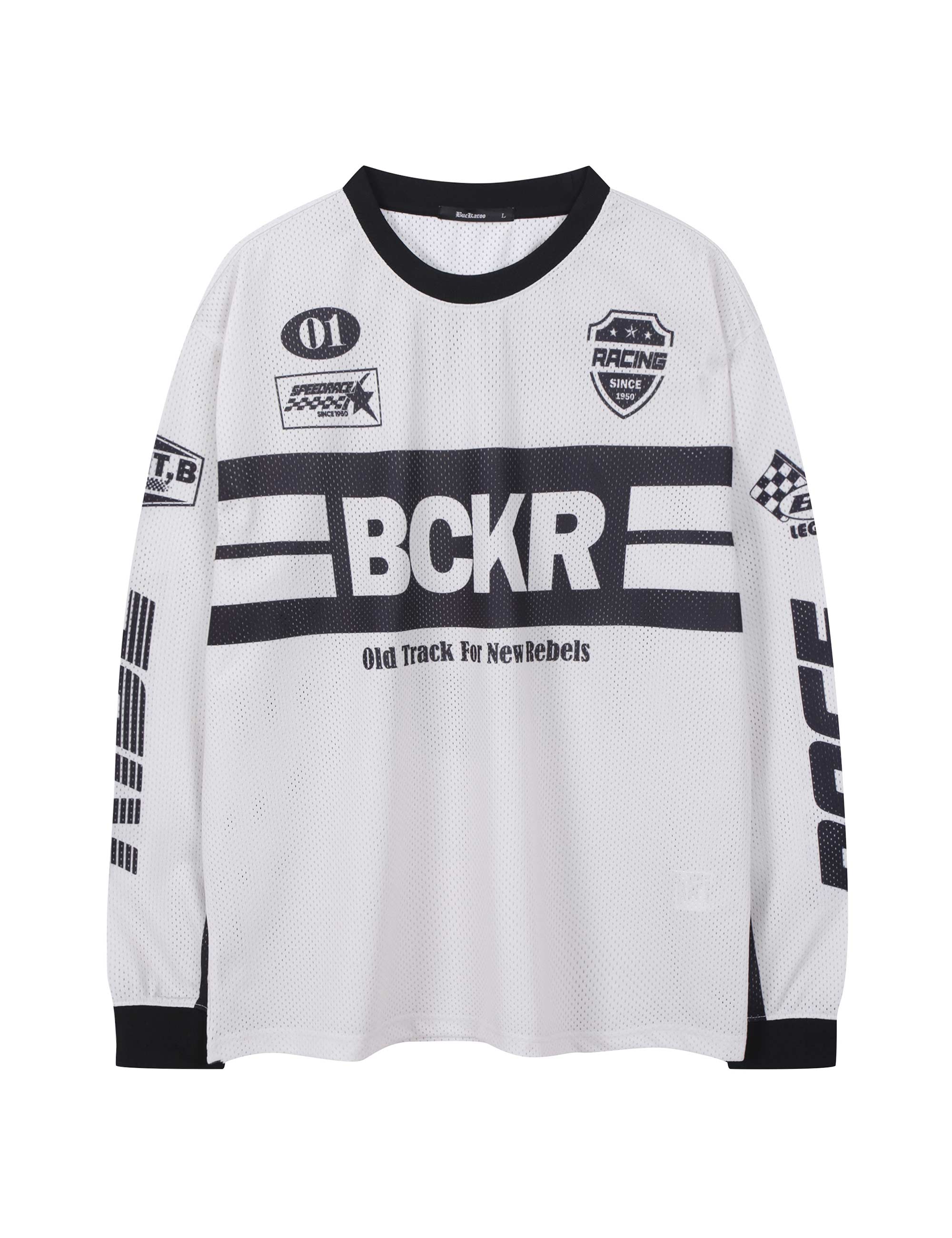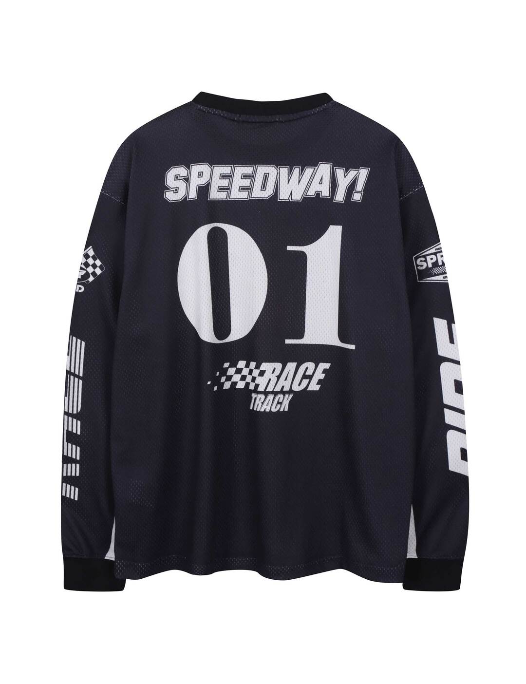 레이싱 아트워크와 메쉬 소재로 시원하고 스포티한 무드를 선사하는 오버핏 긴팔 티셔츠