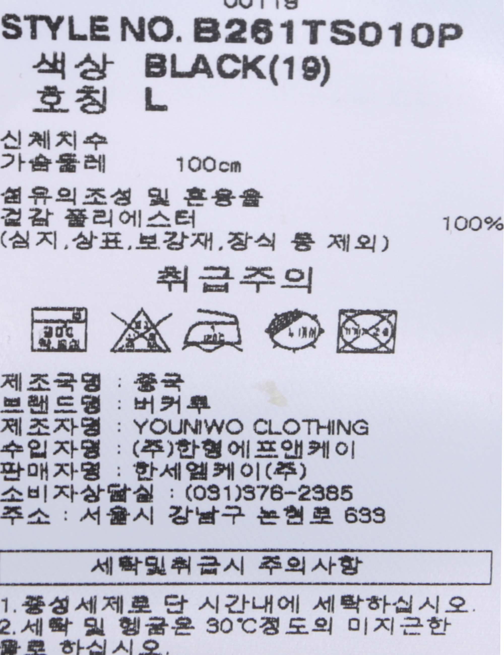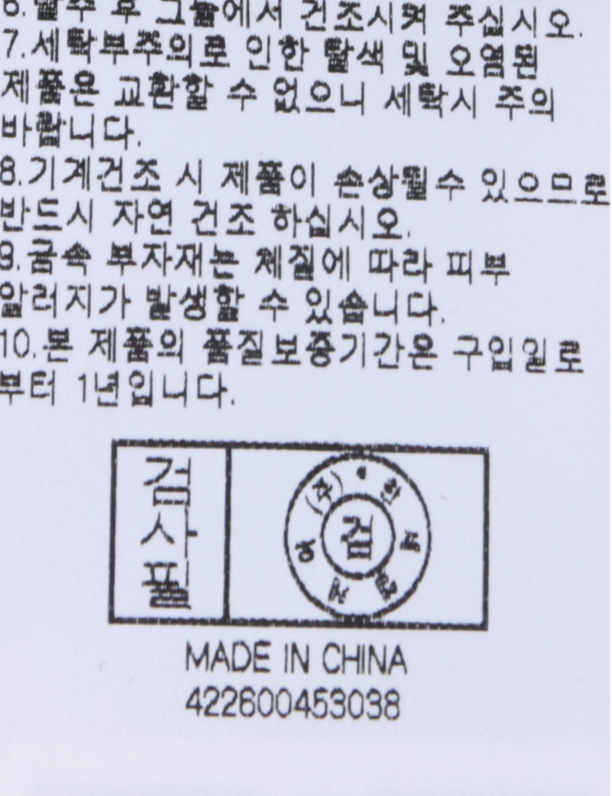 | 세탁방법 및 취급시 주의사항 | 중성세제로 단 시간내에 세탁하십시오.(케어라벨참고) |