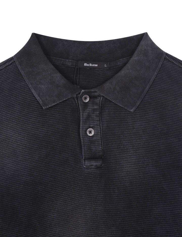빈티지한 다잉 컬러와 와플 텍스처가 돋보이는 남성 데일리 카라 티셔츠